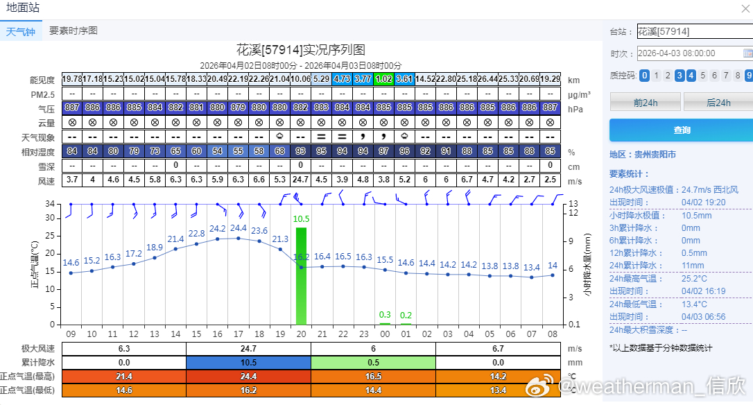 【强降水和强对流】昨天到今晨,内蒙古部分地区出现降雪,贵州东部、湖南、广东北部、江西的降雨明显增强,多地出现大雨-暴雨,并且伴随短时强降雨、雷暴大风、冰雹等强对流天气。贵州贵阳南部的花溪昨天19点20分出现了10级的雷暴大风。今天降水相态东移,东北雨雪增多,南方继续大范围对流降水。