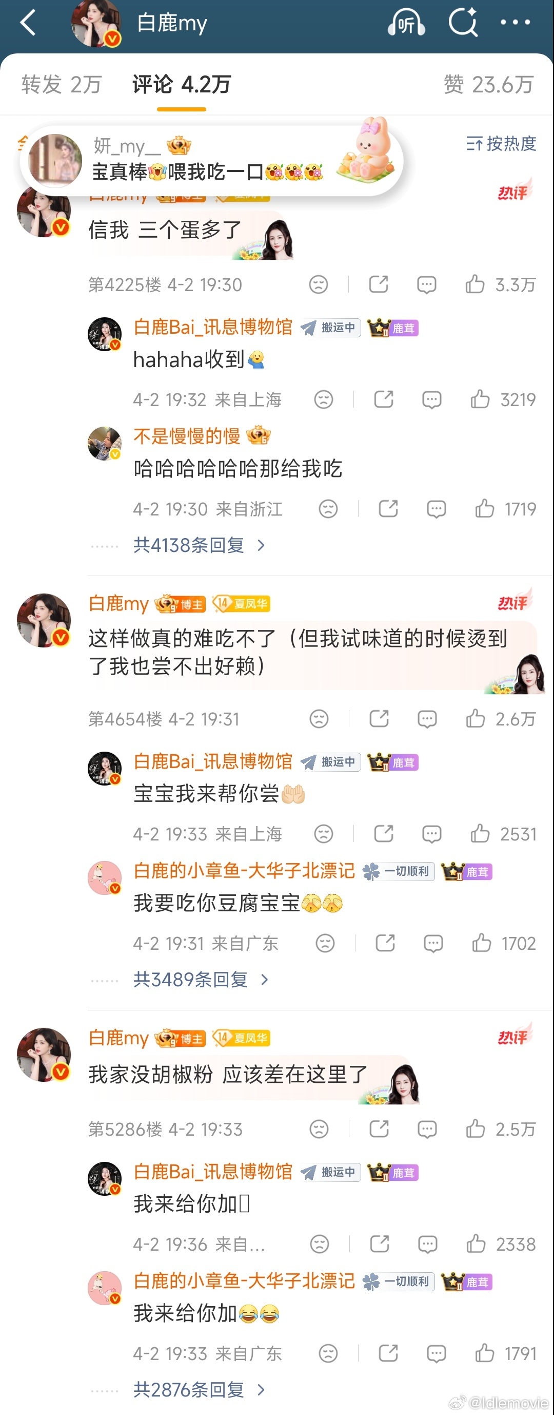 白鹿素颜做饭自拍内娱为数不多的活人白鹿又来营业了,真实接地气,这次素颜大秀厨艺,从 自信发文做饭不是有手就行到自曝操作失误再到幽默归因“我家没有胡椒粉”,反差过程堪称厨房喜剧人。