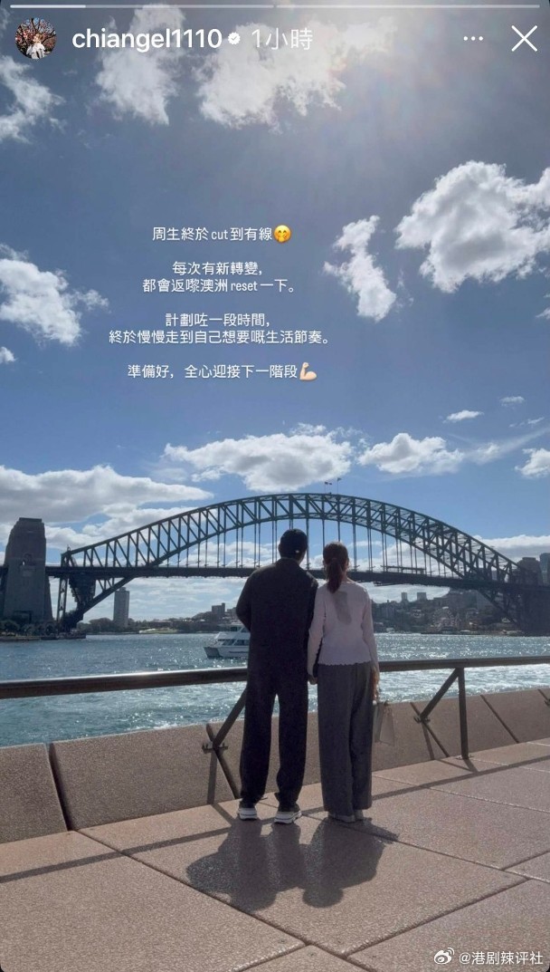 藝人蔣家旻在社交網限時動態上載於澳洲拍攝的夫妻背影相,並代任職HOY監製的老公周永基「官宣」離職:「周生終於cut到有線,每次有新轉變,都會返嚟澳洲Reset一下。計劃咗一段時間,終於慢慢走到自己想要嘅生活節奏。準備好,全心迎接下一階段。」