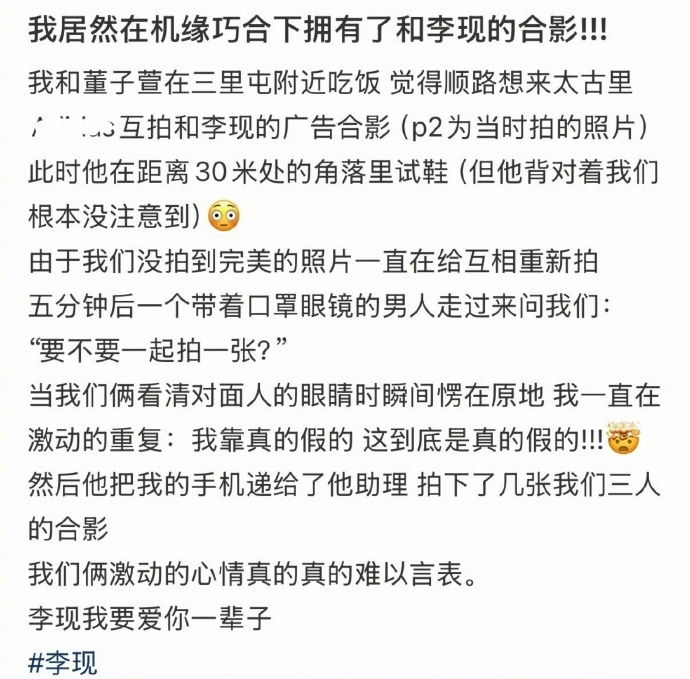 上一秒和李现的广告牌合影下一秒李现本人出现在面前并主动合影这是什么偶像剧情节