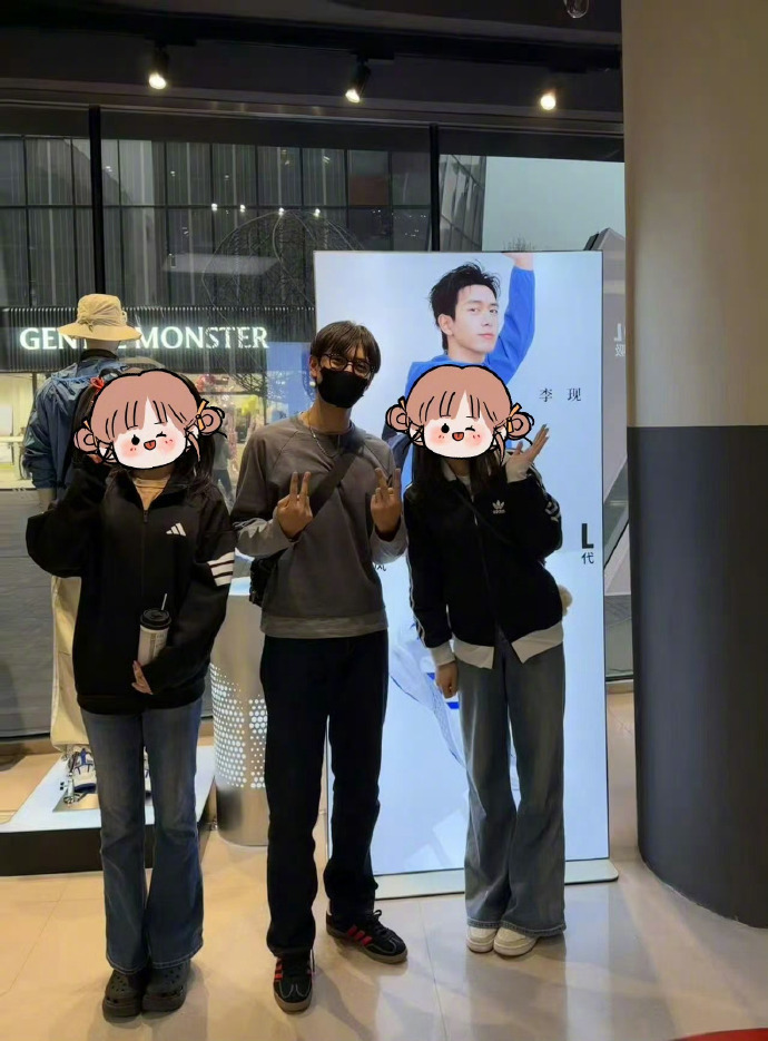 上一秒和李现的广告牌合影 下一秒李现本人出现在面前并主动合影 这是什么偶像剧情节啊李现逛街偶遇粉丝
