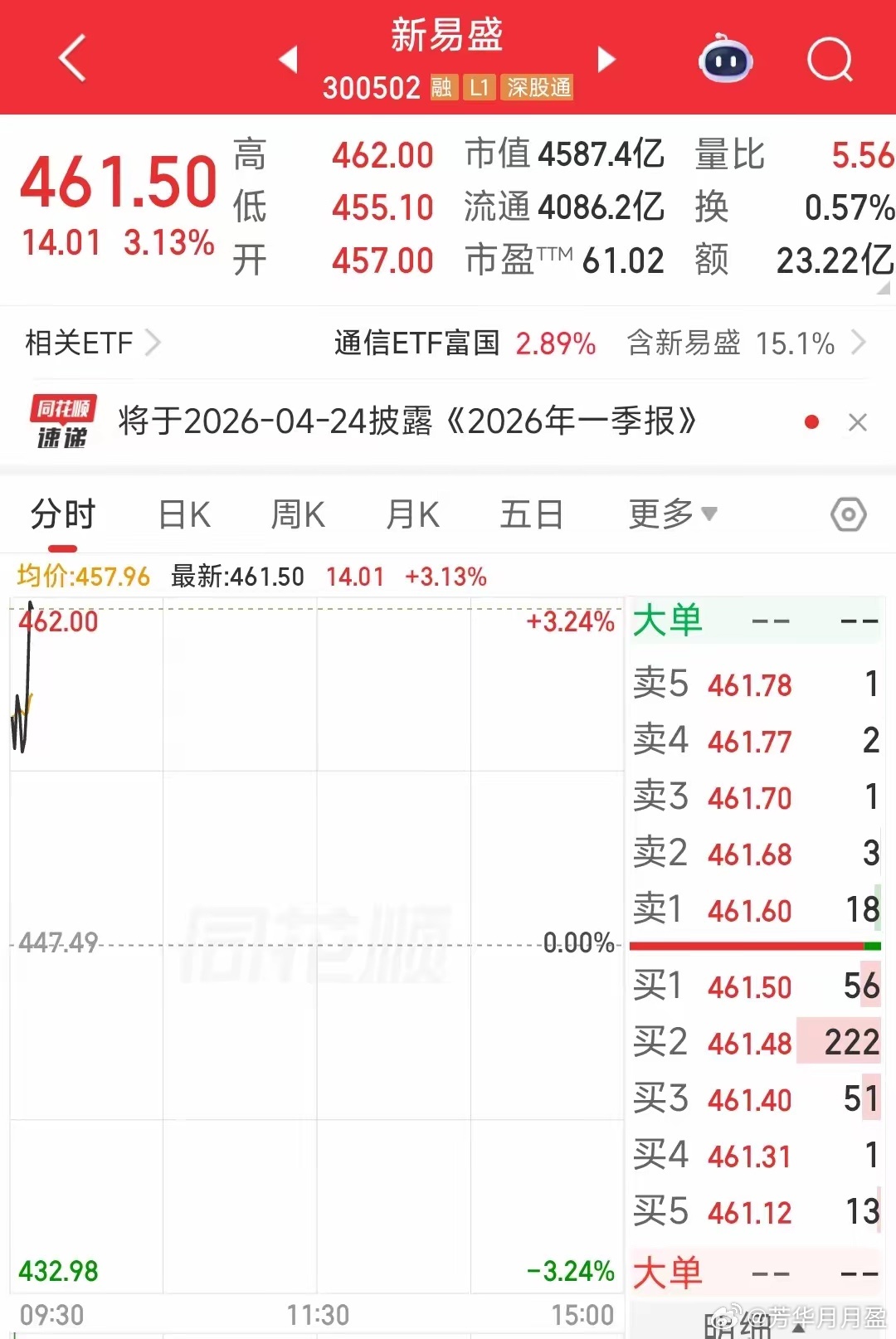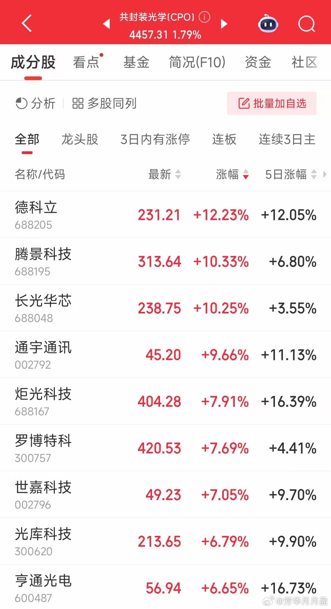 昨晚CPO有利好加之美股昨晚光通信板块大涨刺激,今天早盘直接高开了,截至目前板块涨幅居前。中际旭创、天孚通信、新易盛等也都是高开高走,因为大盘今天早盘并不太强,所以整体需要看持续性怎么样,毕竟临近假期了!