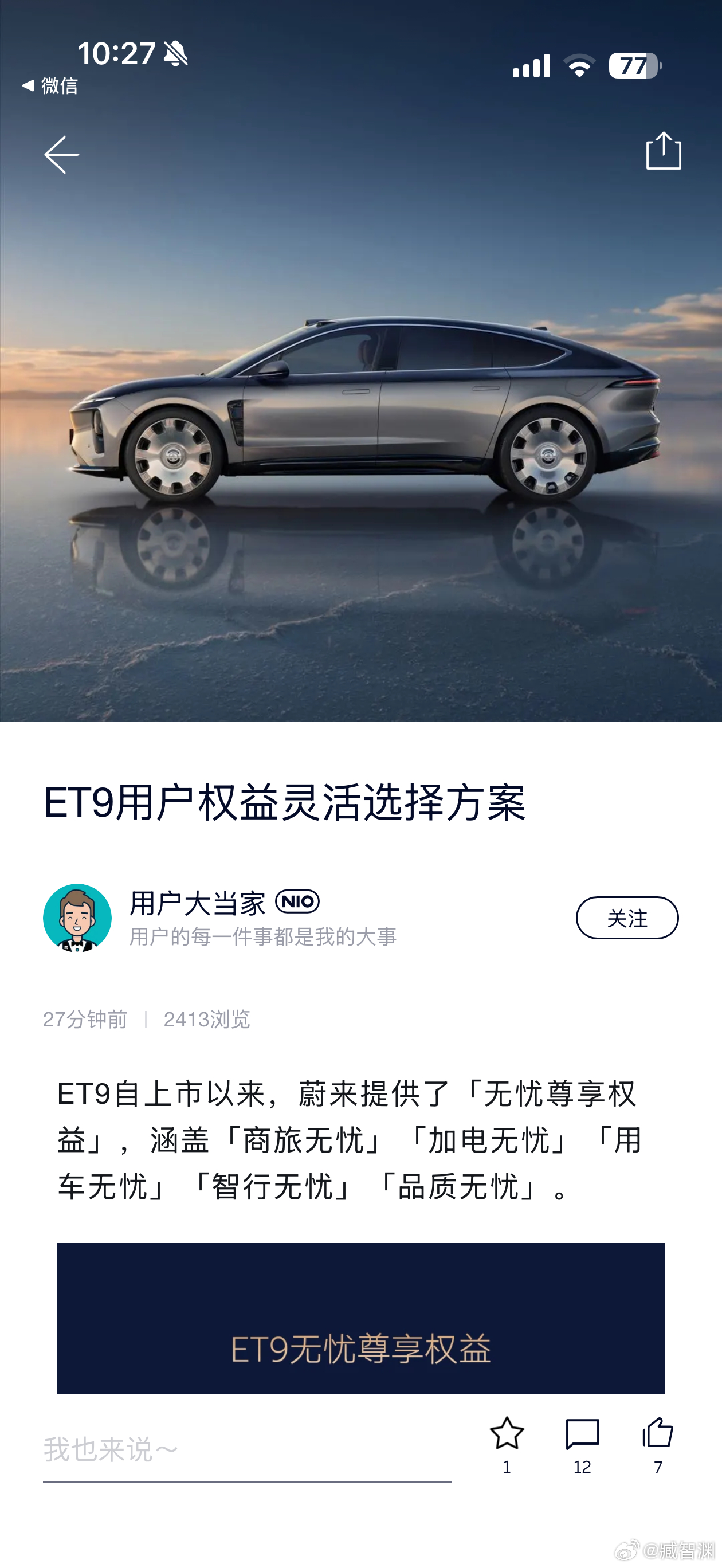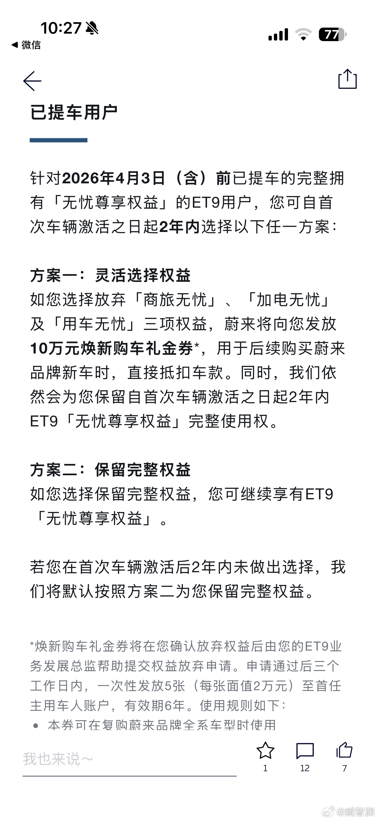 蔚来大气!直接送了我10万元代金券买新车!ET9的用户都是真金白银支持蔚来,蔚来也直接积极回馈大家10万