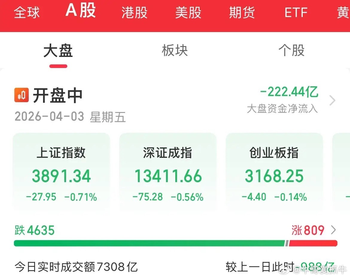 港股、外盘今天假日休市,A股内资一人独舞,量化交易不给你狠砸就算不错了,三大指数高开低走,个股待涨4500家,