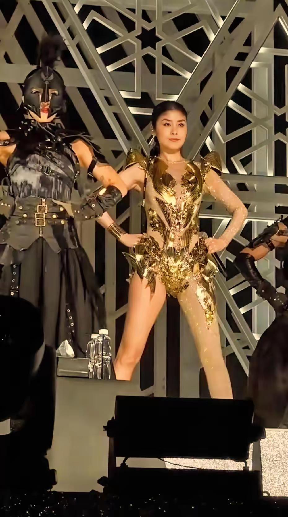 53岁的陈慧琳吉隆坡演唱会开唱,身着金色闪亮上衣,搭配三角裤,这造型,这身材,简