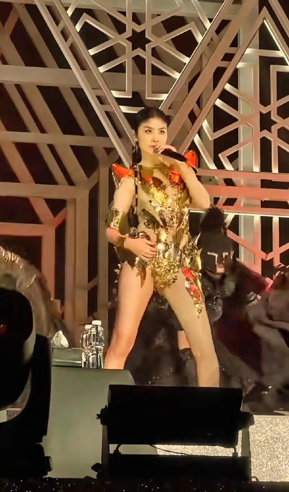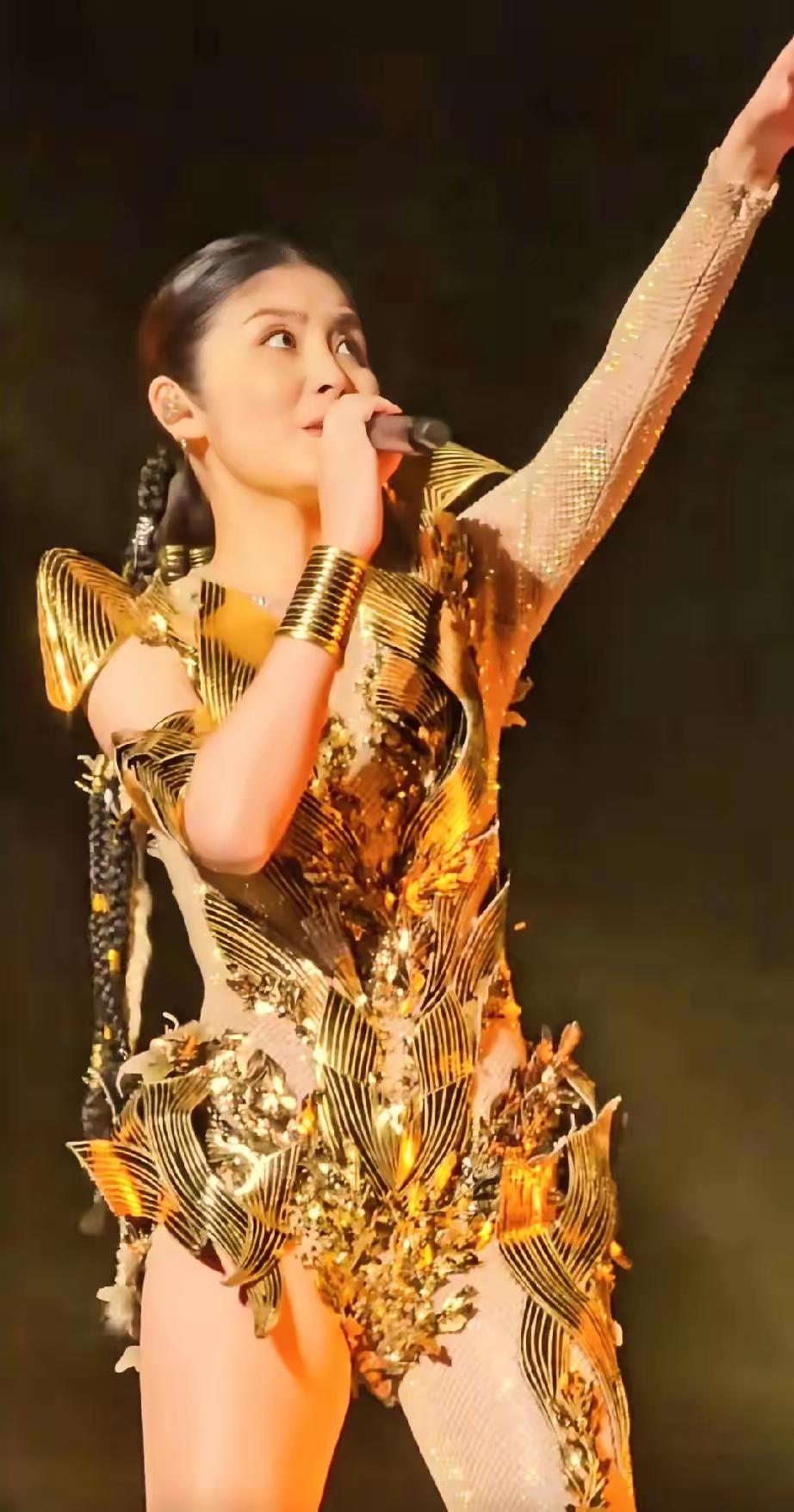 53岁的陈慧琳吉隆坡演唱会开唱,身着金色闪亮上衣,搭配三角裤,这造型,这身材,简直太好了。