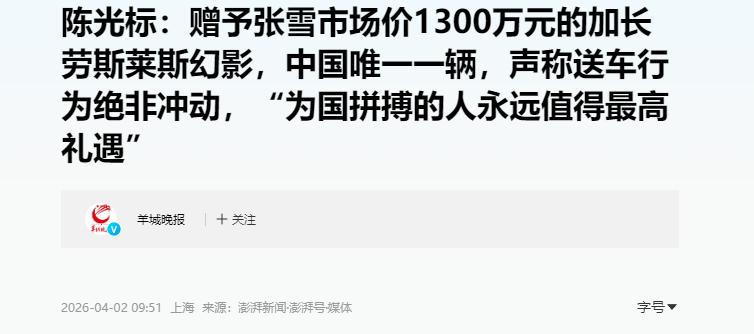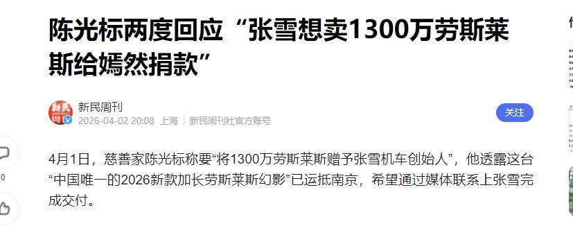 陈光标前脚刚喊完“1300万劳斯莱斯送给你”,后脚张雪就接话了:“你说的儿豁,那我收了,顺便找个二手车商8折上门收了,把钱捐给嫣然天使,我们委屈点还用面包车接客户。” 4月1号,陈光标在社交平台发了视频,站在那台锃亮的劳斯莱斯旁边,语气是藏不住的激动:张雪你太牛了,带着中国机车在世界顶级赛场连续拿了两个冠军,打破了国外几十年的垄断,这是咱们中国制造的骄傲!标哥我看的热血沸腾,这车必须送给你,你是中国的英雄,期待你再创佳绩。 陈光标跟记者明确说,这台全新的车已经运到南京了,就等着联系上张雪办交付。要知道,陈光标向来是国内慈善圈里最敢“高调”的人,当年的名场面大家都还记得,这次出手千万豪车,核心就是想让所有人知道,为国拼搏的人,永远配得上最高的礼遇。 本来按常规剧本走下去,要么是张雪百般推辞,要么是感恩戴德收下,怎么都逃不开“豪车配英雄”的爽文路子。 可谁都没想到,张雪根本不按套路出牌。一句重庆方言“儿豁”,直接把场面拉到了最接地气的频道——翻译过来就是“你不骗我?”,没有半句虚头巴脑的客套,干脆利落地接下了这份馈赠,转头就给了所有人一个意料之外的答案:车我收,但我不留,找靠谱二手车商8折上门收,卖的钱全捐给嫣然天使基金,我们团队委屈点,继续用面包车接客户。 很多人不知道,这个能在世界顶级机车赛场打破国外垄断的汉子,至今连汽车驾驶证都没有,平时出行要么骑摩托,要么就是跟团队一起挤面包车。更别说他创立的机车品牌,去年还亏了两千多万,可他愣是咬着牙不接受资本对产品的干预,一门心思搞自研,全年就休息5天,用的手机屏幕裂了都舍不得换。 对他来说,这台1300万的劳斯莱斯,别说撑场面了,就算真开出去,都不如他手里的扳手、脚下的摩托车实在。与其让这台豪车停在车库里落灰,不如换成真金白银,去给那些唇腭裂的孩子凑手术费,让更多孩子能拥有完整的笑容,这才是把这份善意用到了刀刃上。 有意思的是,一开始看到张雪的回应,陈光标还愣了一下,最早的留言里还说,这车是送给你个人使用的,卖掉捐出去,是误会了我的初心。 可没过多久,标哥就彻底想通了,直接改了口:既然你想卖掉做善事,这也是好事,我支持!咱们私信对接,车的事就这么定了,等你消息。 你看,本来大家都以为会闹成一场口水仗,结果俩人一个比一个敞亮,一个敢送,一个敢捐,愣是把一场本来可能充满流量争议的事,变成了一场实打实的爱心接力。 网友们的评论也特别有意思,有人说:本来以为是豪门赠礼的戏码,结果直接升维成了慈善接力,俩人格局都拉满了;还有人说,张雪这波操作才是真的体面,千万豪车开出去只能赚回头率,可千万善款捐出去,能救成百上千个孩子,这才是真正的为国争光。 其实说到底,这事最动人的地方,从来不是那台1300万的劳斯莱斯。而是陈光标看到了为国拼搏的人,愿意拿出最大的诚意去认可;而张雪接住了这份认可,又把它变成了更广阔的善意,送给了更需要的人。 一台豪车总有贬值的那天,可一份能救人的善意,永远都不会过期。张雪和团队继续开着面包车奔波在造车的路上,可他们心里的底气,比开着任何豪车都足。毕竟,真正的体面,从来不是你坐的车有多贵,而是你做的事,有多暖。