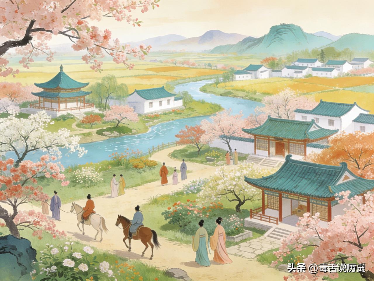 “韦曲寻花”这一典故,源起于唐代长安城南的韦曲——一个由韦氏豪族世代聚居而形成的风景胜地。韦曲位于唐长安城南郊,北有凤栖原,南有潏水、神禾原,依山傍水,贵家园亭、侯王别墅多建于此,乃行乐之胜地。每至春日,韦曲繁花似锦,风光迷人,因此成为唐代文人墨客踏春赏花的绝佳去处。 唐代诗人对韦曲的繁花美景留下了大量吟咏,杜甫在《奉陪郑驸马韦曲二首》中便写道:“韦曲花无赖,家家恼杀人”。仇兆鳌注引《杜臆》指出,韦曲“在京城三十里,贵家园亭、侯王别墅,多在于此,乃行乐之胜地”,并推断此次游历应在天宝之季、禄山未乱之前,其时花蕃盛极一时。权德舆亦有“杜城韦曲遍寻春,处处繁花满目新”之句,罗邺更以“韦曲城南锦绣堆,千金不惜买花栽”来描绘韦曲春日繁盛的景象。“寻花”于韦曲,由此成为唐代长安春日里不可或缺的文化传统,在后世诗人笔下也逐渐凝结为特定的文化符号。 “韦曲寻花”作为典故正式定名,见于明代汤式的散曲《别友人往陕西》。这支散曲末句“知他是东陵种瓜,知他是新丰殢酒,知他是韦曲寻花”,将韦曲寻花与召平种瓜、新丰醉酒并列,三个典故依次嵌合,妥帖自然,情调低沉委婉,将作者盛衰无常的人生感慨与借酒消愁的漂泊苦闷作了充分的揭示。明代佘翔亦有“韦曲寻春宴,梁园作赋才”之句,可见韦曲赏花之事已在后世诗词中成为追寻春日雅趣的典故符号。 “韦曲寻花”这一典故,既是对唐代韦曲春日繁花盛景的追忆,也是对盛唐气象的追怀。它既实指韦曲这一具体地点的春日赏花活动,又在后世的不断运用中,逐渐成为一种文化符号——代表着人们对美好春光的追寻、对田园隐逸生活的向往,以及怀才不遇时借以抒发身世飘零之感的精神寄托。