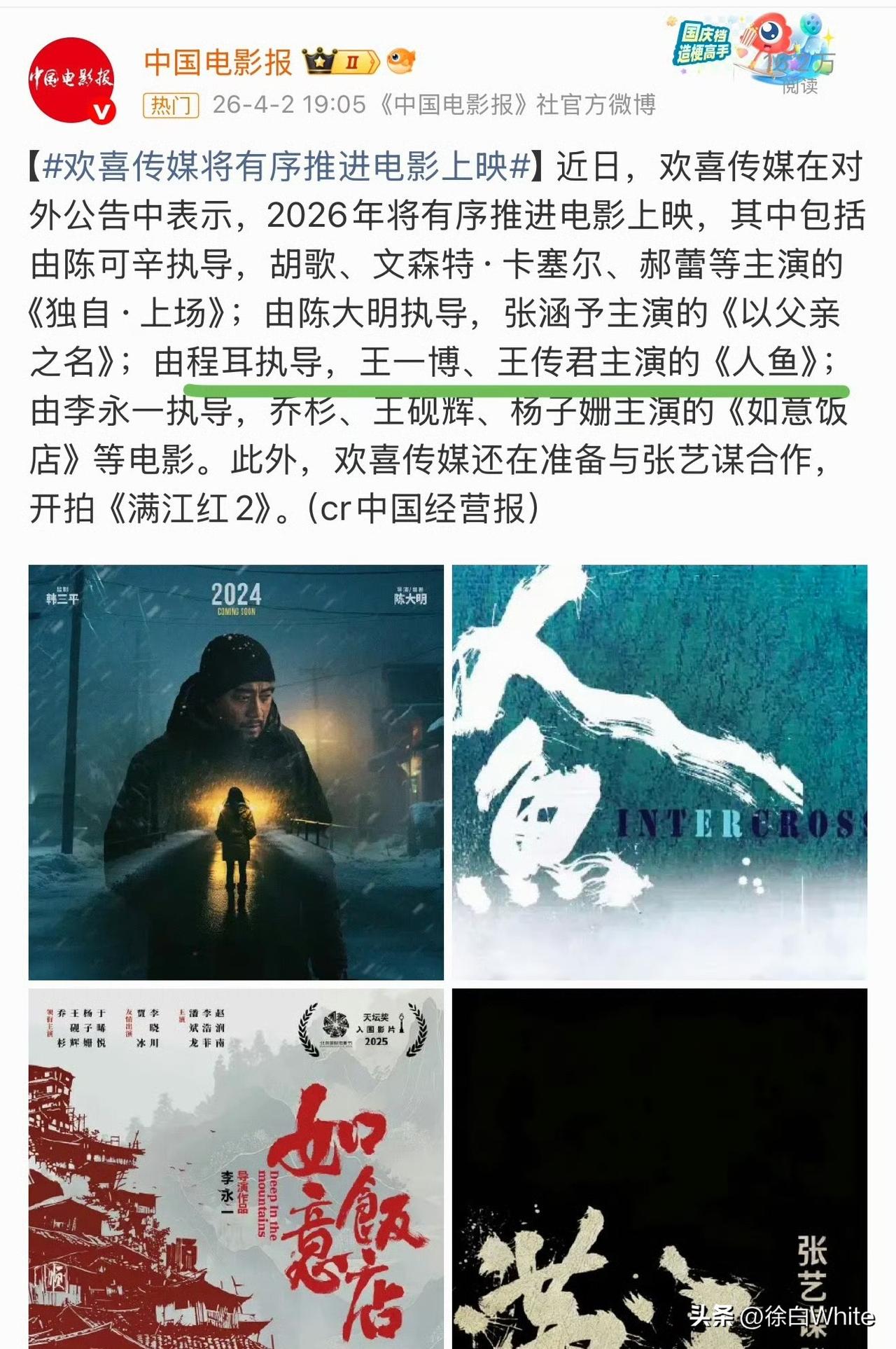 4月3日,王一博主演电影《人鱼》终于不再捂着保密不让说了!这电影王一博是真拍了! 感觉这部剧的片方欢喜传媒完全是聪明反被聪明误,这部电影其实没必要捂的这么严实,导致很多人从期待到怀疑这部电影到底有没有拍!前两年给王一博也带来了很多的误会与困扰,现在公开称《人鱼》2026年会有序推进,也就是说会上映,其实这部剧前两年就应该上映了,王一博那时候活跃度也高,话题度也高,现在人都佛系了…… 无论是拍电视剧还是拍电影,上映时间最好不要超过杀青后的2年,最好一年半内播出,不然预期效果很难达到!
