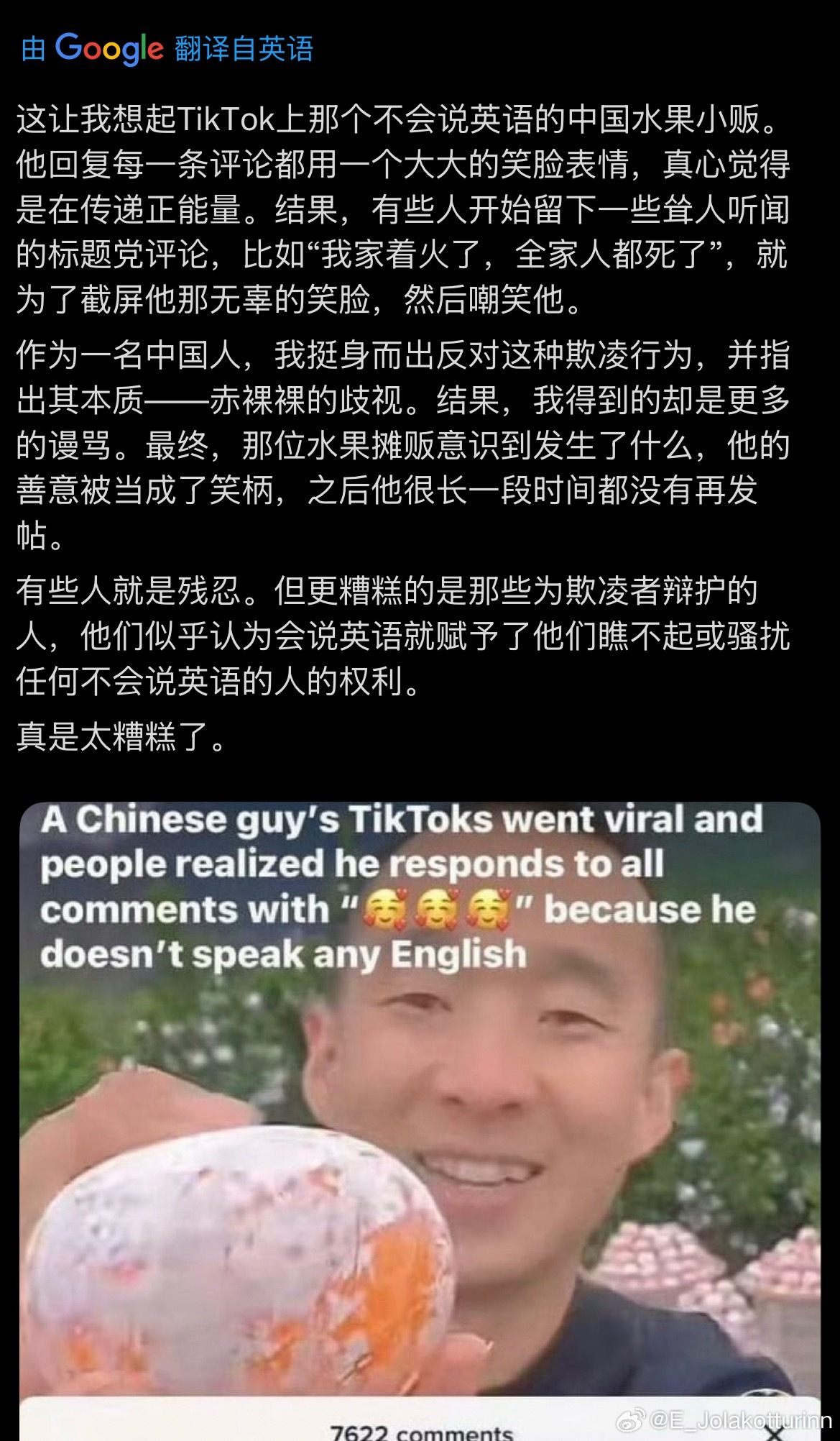 X的评论区很少有中文留言,所以每次看到中国网友的回复我都会很注意阅读。
