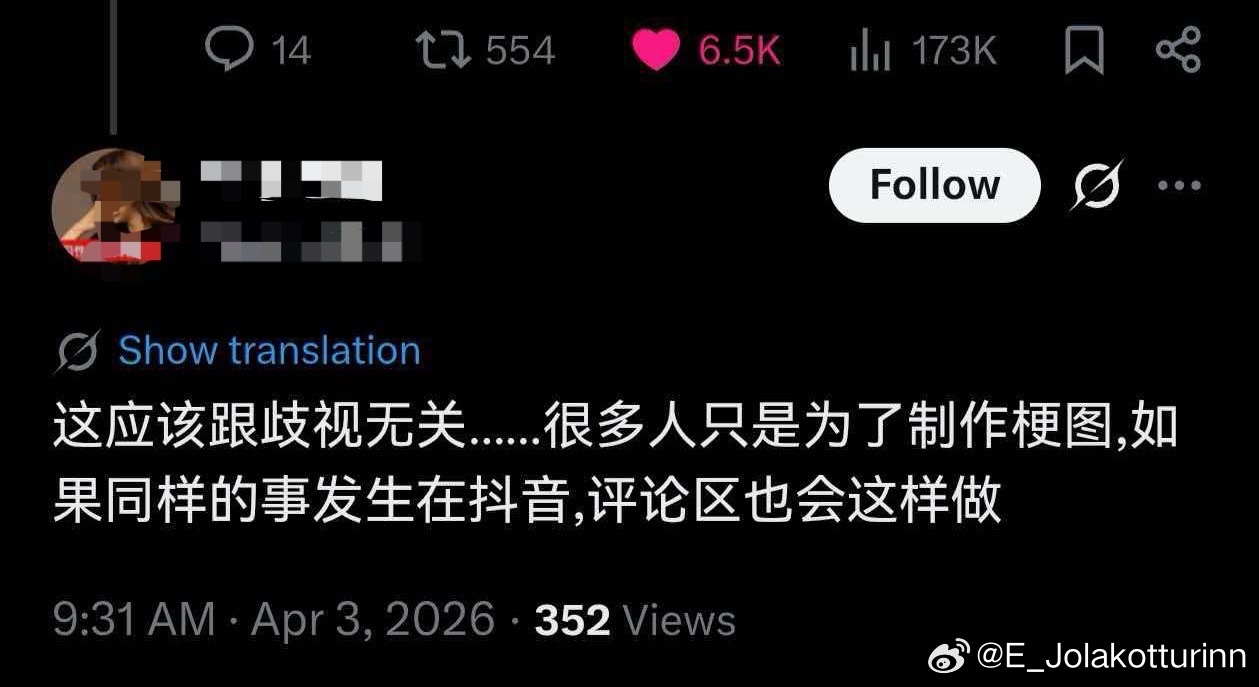 一边看某些外国网民批判这种歧视行为(觉得自己没错的也不少),一边看某些中国网民一个劲说自己没被歧视,最后我反倒成了被批判的人,也挺割裂的