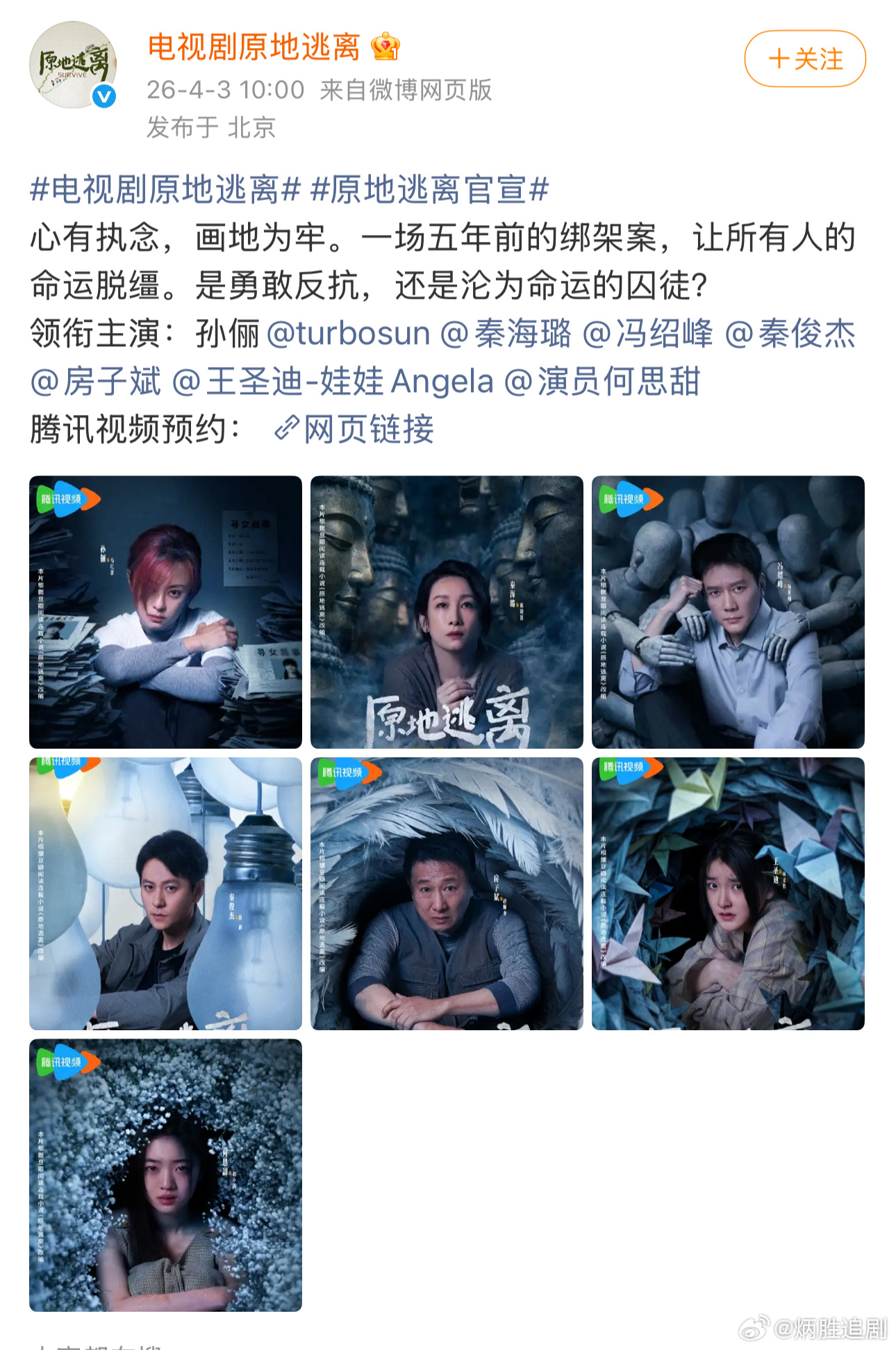 电视剧原地逃离官宣,孙俪、秦海璐、冯绍峰等领衔主演全部都在一行。现在总局严控,后续都是一行。。。