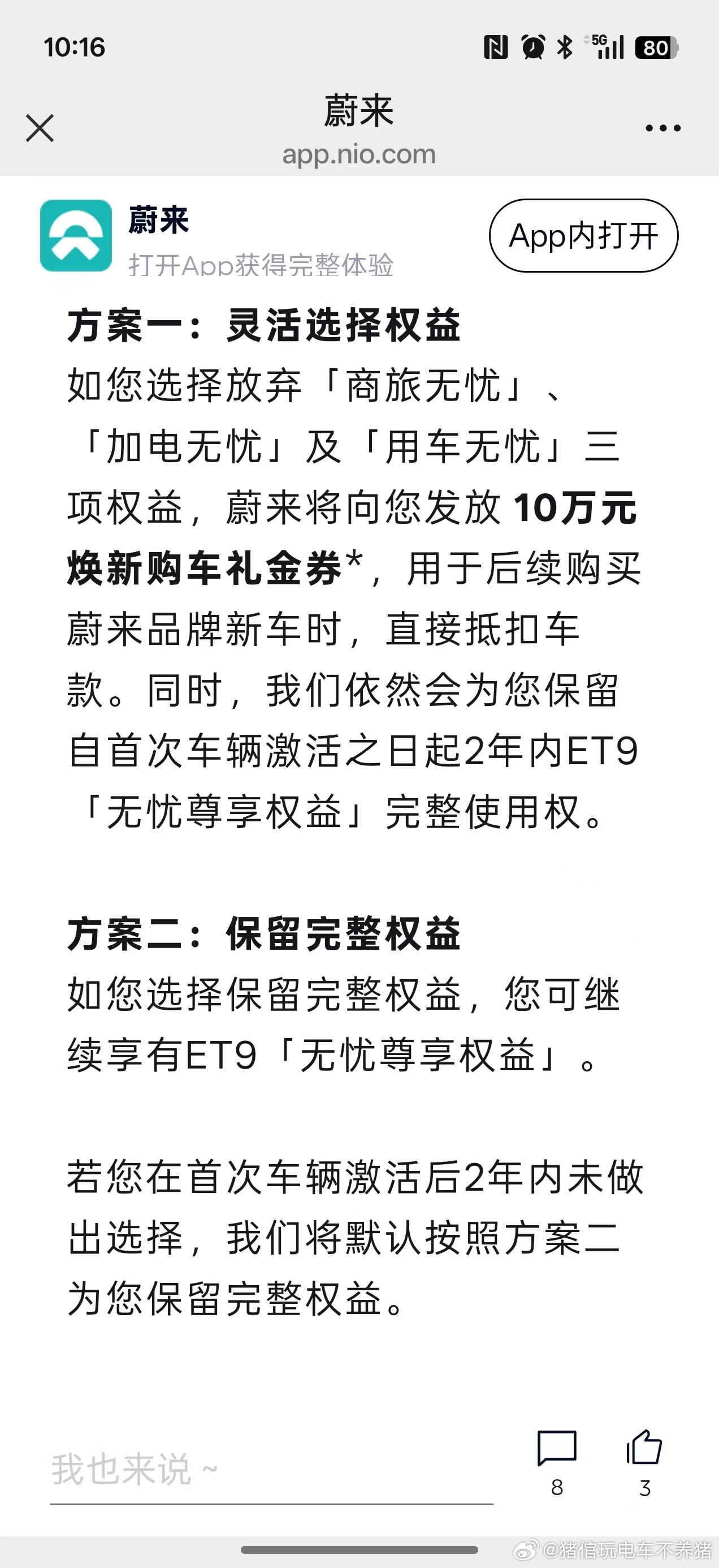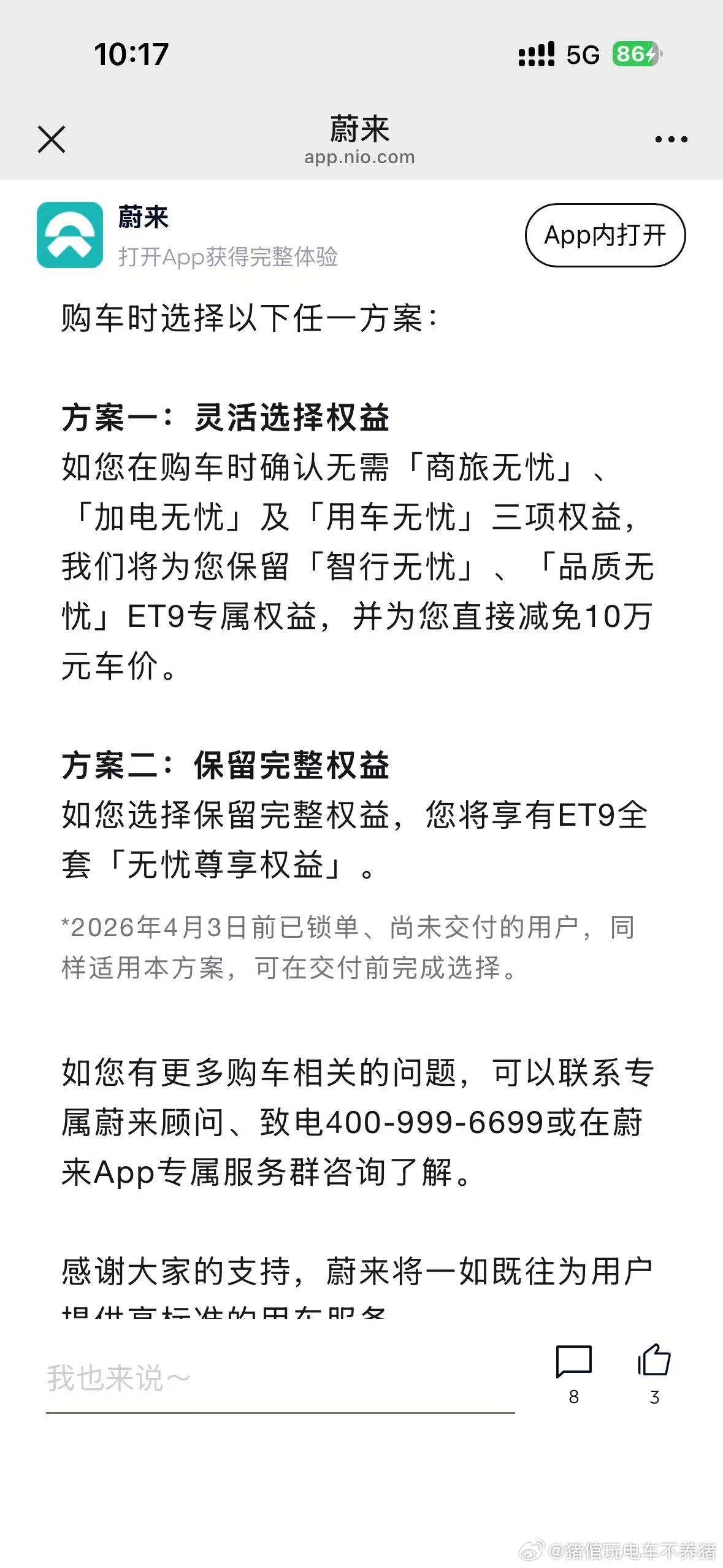 ET9把权益选择权交给用户,我认为这个是非常友好的🤝同时在这个节点出这个政策,是不是意味着。。。。欢迎关注4.9号蔚来ES9发布会