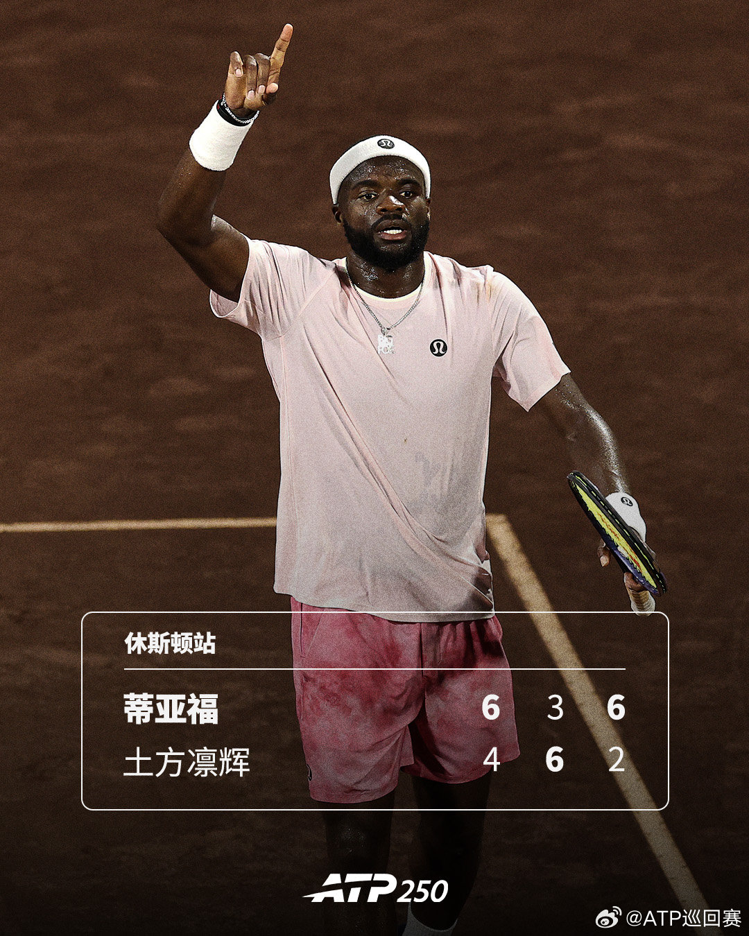 ATP250 休斯顿站第二轮,2号种子蒂亚福以6-4 3-6 6-2击败土方凛辉,取得红土赛季首胜,晋级八强静候米克尔森与波普林的胜者。