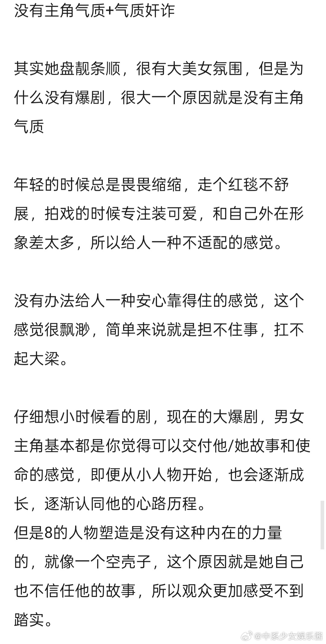 热巴粉丝心累脱粉了,说她不会再有热播剧了。我觉得演技肯定比z好,就是缺少观众缘
