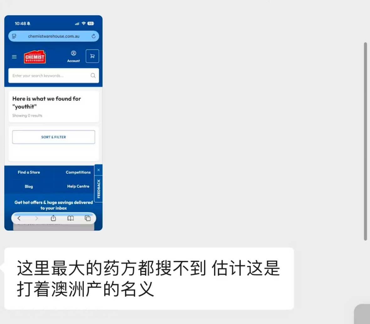 优思益说是澳洲品牌,但是澳洲大药房都找不到,这个只要问下当地人,或者去正规网站查一查就知道,不知道为什么那么多大网红会翻车。