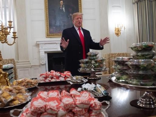 特朗普,八十多岁,精力很充沛,据说他养生的秘诀是吃大量的阿司匹林,日常三餐以麦当劳为主,也不知道真假,不过,他在宴请人们到白宫时,招待的餐食就是肯德基 ,麦当劳套餐之类的。 到底是反叛在作秀,还是另有玄机?世界都盯着这一场“养生实验”,想看这个“叛逆老头”还能跑多远。 走进白宫,总能看到特朗普带着标志性的金发笑容,走路带风,几乎不给旁人留下疲态。 年纪不饶人,但他,仿佛在和岁月比赛。手背那抹淤青,总被摄像机捕捉放大,其实也不算新鲜事。 这些年,他公开的日程,密密麻麻,和二十多岁的年轻幕僚拼体力,一点也不落下风。 可台面上的精力过盛,台下细节却耐人寻味。 一份来自华尔街日报的老资料,被反复提及:特朗普每天服用三百二十五毫克阿司匹林,这剂量比心血管医生建议的常规八十一毫克翻了好几番。 他这种吃法,医学界并不鼓励。按他自己的说法,是担心血液太粘稠,而阿司匹林能让血液“稀一点、顺一点”。 在特朗普那里,血液稠就像政治里的低效和迟滞,而要保持冲劲和活力,得靠“稀血”,如流水线一样畅通无阻。 淤青不是瑕疵,反倒像“功勋章”,谁都不能说他偷懒。 医学专家摇头,理由不外乎大剂量阿司匹林可能让人增加失血、内出血的风险。 白宫医疗团队虽被媒体追问无数次,但最终还是只字未提让特朗普减药。 就连他手上那些红紫的淤青,也被诊断为长期吃药加握手摩擦的结果。 这情况,换在别人身上,很难说不是危险警告。 可特朗普,总能把这些“副作用”化成自己勤奋工作的铁证,就像战场上的创口贴一样,提醒别人他始终冲在前线。 外行不懂医学判断,但他自有一套逻辑。美国监管部门和医生团体,前些年已经达成共识:健康老人常规用阿司匹林,可能弊大于利,可他偏偏选择性无视。 理由简单粗暴,他说“相信感觉”,而不是数据和权威。 这套做法和他质疑气候问题、翻旧外交“规矩”的手法没有区别。 在他的思想里,“我自己说了算”才是真理。 这种思路,直接又冒险,支持他的人管这叫“独立思考”,觉得他敢于砸精英的牌桌,哪怕舆论再嘲笑都无所谓。 说到吃,特朗普更有一套独特方案。2019年美国联邦政府部分停摆,白宫厨房都开不了锅,他直接掏钱采购麦当劳和汉堡王的快餐,请体育冠军队吃了顿别开生面的宴会,这事成了网络热搜。 到了2026年,前几天他请冬奥会美国冰球队来白宫,媒体注意到,每个汉堡纸盒上都印了白宫的标志,这仪式感还真和传统国宴大相径庭。 这样的菜单,在讲究排场的白宫,有点“格格不入”。 可特朗普偏要这么来。每次公开分享,他都说麦当劳“干净、卫生”,不怕下毒,也不用担心食材作假。 这句话,听起来像孩子气的任性,其实背后有政治算盘。 在传统精英看来,大总统天天吃快餐,吃的都是脂肪和糖,这不是寒碜自己吗? 但对很多美国普通人来说,这正是一种身份认同。 没有贵族的架子,打破精英那一套讲究生活的仪式,把自己变成“草根领袖”,吃同一套餐,瞬间拉近和普通人的距离。 他用快餐聊家长里短,让粉丝觉得他和街坊没差别。 传播这样意味,特朗普玩得顺手。他明白图片冲击比会议纪要更上镜。 每次白宫大快餐宴,运动员西装革履拿着汉堡往嘴里塞,画面远比一桌牛排、红酒来的热烈。 大家看到后台菜单的纸盒时,争议自然来了,反对者说他“掉价”,但支持者越辩解,越觉得这种做法才是真性情。 就像当年的大红色棒球帽标志,每戴一次,就强化一份身份认同。争议越多,他的粉丝越铁杆。 特朗普习惯把什么都当成自己的战场。当初修边境墙,不信专家,也不怕被骂,固执得很。 他对阿司匹林和麦当劳的痴迷,已经成了一种独特的标签。 有时候明知不合理,他还是咬牙坚持,哪怕压力再高,也要展示自己的态度。 这种“不服老”甚至“不服理”的做派,成了他最独一无二的个人魅力来源。 在如今的国际局势里,特朗普这套“反精英操作”,其实并非毫无章法。 美国社会正处于焦虑和分裂交织的时期,精英和草根、媒体与公众的关系都变得日益敏感。 特朗普敏锐地嗅到其中的情绪,把每一条癖好放大、包装,用最通俗的动作来展现自己的“不同”,让每一个掌声和争议都变成支持率的筹码。 这既是他个人的另类生存术,也是美国分层社会的一场真实缩影。 普通美国人看到不完美的他,更容易投射自己的生活压力和社会情绪,觉得自己和总统之间的区别其实没那么大。 但特朗普的养生方式,谁都别模仿。超量吃阿司匹林,可能换来大出血,高热量快餐久了,对心血管健康更是一颗不定时炸弹。 信息来源:特朗普回应手背瘀青:因长期大剂量服用阿司匹林——央视新闻