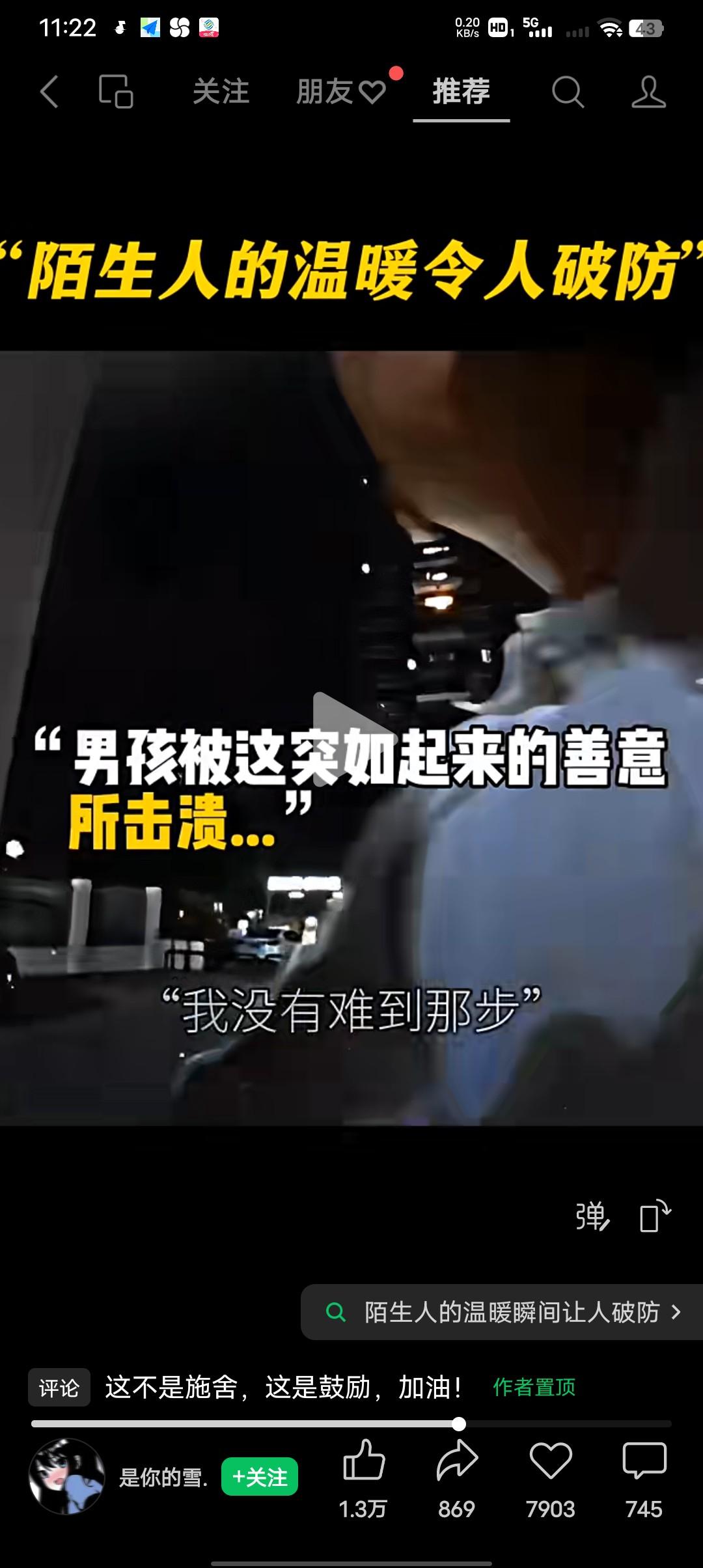 成年人的世界不容易,陌生人的一句认可就会让不怕苦,不怕委屈的成年人瞬间破防! 男子为给爸治病,白天工作晚上跑代驾兼职,乘客:你这代驾是兼职还是…… 男子:兼职,我爸进医院了,要等钱。 很快到了目的地,乘客在知道男子的情况后要多付钱给男子“不用,不用,真不用,我还没难到那一步”男子急忙推辞解释。 乘客:我认可你这份孝心,你懂的,我不是可怜你,我是认可你,兄弟,加油,会慢慢好起来的。 乘客大哥说完认可不是可怜,男子瞬间泪奔,哽咽的说话都不利索了,乘客走出几步,回头看见男子还在哭,乘客大哥返回来又给男子一个拥抱,拍了拍男子的肩膀“我们成年人的世界都是这样一步一个脚印脚踏实地走出来的,兄弟一切都会好起来的,你眼前的坎坷都是暂时的,加油” 有时候成年人也很脆弱的,网友说,我们成年人不怕苦不怕委屈,就怕陌生人突如其来的善意,让人瞬间破防!往往被认可的都是陌生人,可被人冤枉的欺骗的都是自己身边最亲近的人。 是啊,越来越认可这句话,这世界虽然破破烂烂,但总有人在缝缝补补!