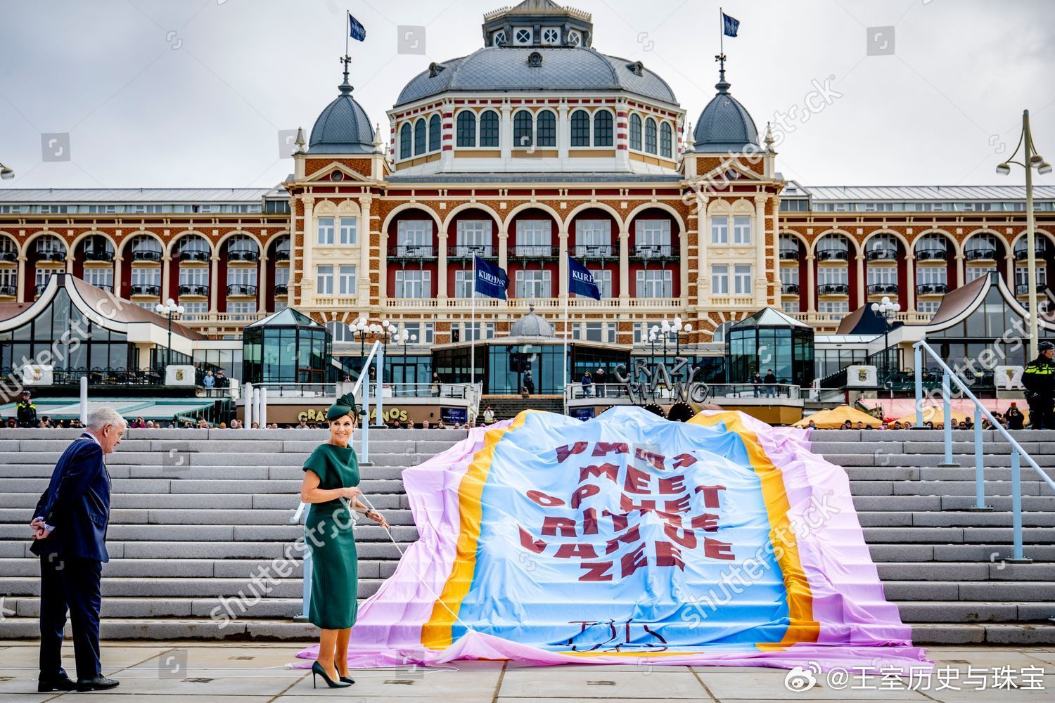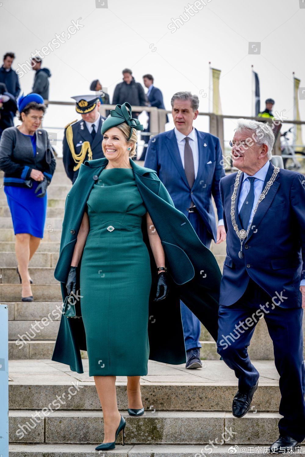 新闻 2026.4.2 荷兰王后玛克西玛为斯海弗宁根翻新后的林荫大道揭幕(荷兰最著名的海滨长廊之一),玛克西玛的新套装来自Natan,裙装颜色和珠宝真是正点。