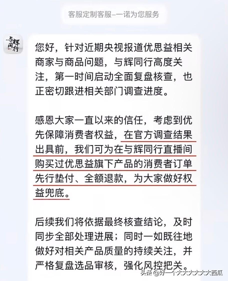 网络直播带货真的必须好好的管管, 特别是那些带货大主播和明星带货, 这次被央视曝光的澳洲品牌优思益的造假事件, 目前互联网直播带货一哥董宇辉可谓是首当其冲, 与辉同行直播间带货优思益销售额应该1000万—2500万元, 销量达到了7.5万—10万单, 也就是说大概有上万的消费者买到了这个假品牌。 可是与辉同行之前一直强调他们有严格的选品流程, 特别是还会对品牌的方方面面做核查, 而且还会提前使用10-20天。 原来这一切的一切都是营销话术, 可怜太多的人还在直播间热情购买, 直播带货再不管就真的成那啥了。 直播间买货避雷
