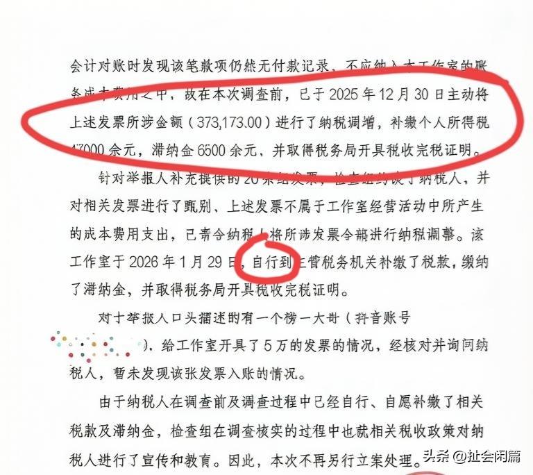 看来已经及时主动改正了错误,补交了税款及滞纳金。所以郑好同学的事应该没事了吧? 看见了一张举报人的告知文书,说明了郑好工作室税务发票的一些问题。 不清楚来龙去脉,只是看上边写着已经补交合规了。 弱弱的问一句:像这种情况是不是及时调整就没有问题了?毕竟这样的事最近查处的比较多,而且直播网红是重点。