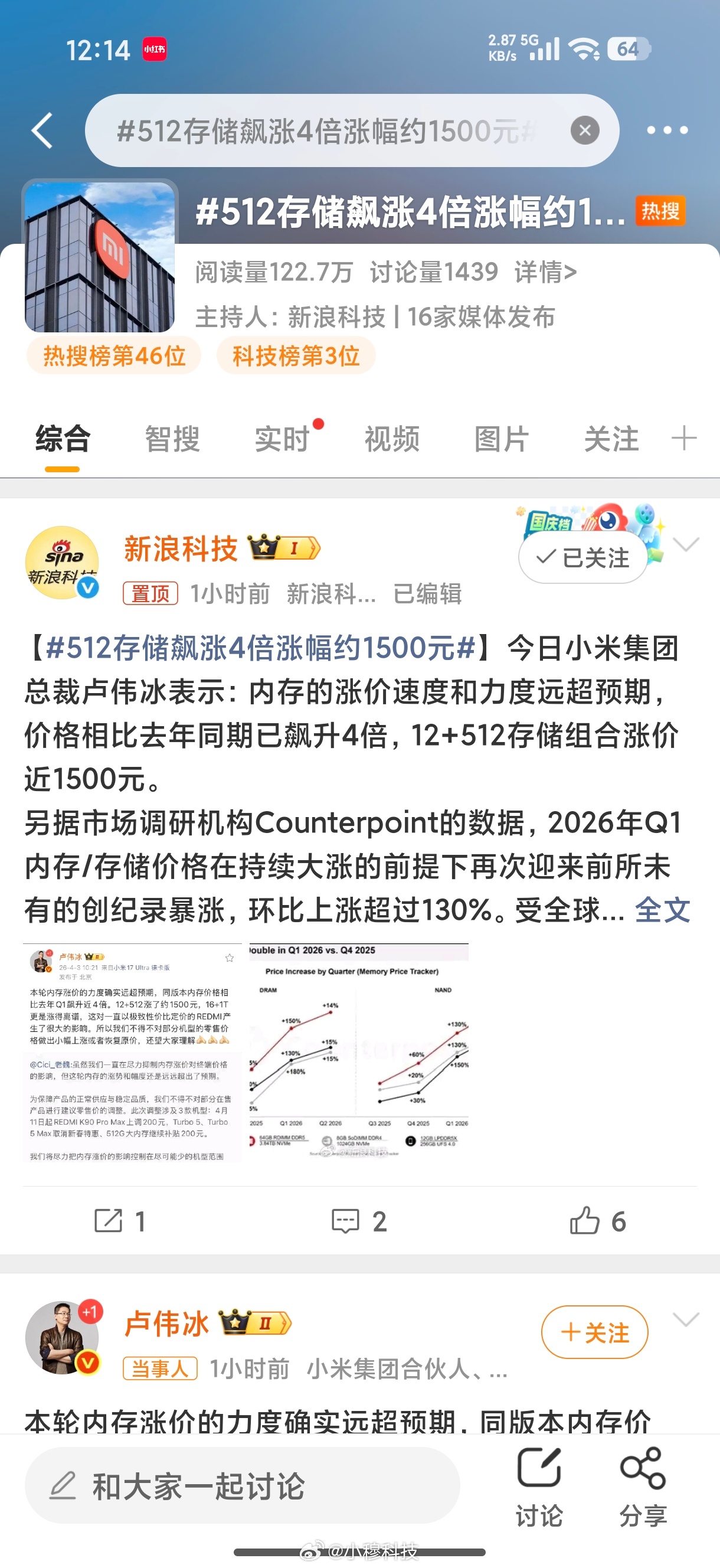 512存储飙涨4倍涨幅约1500元又投了一个热搜,这个投放是为了宣传涨价不多,体现厂商良心?