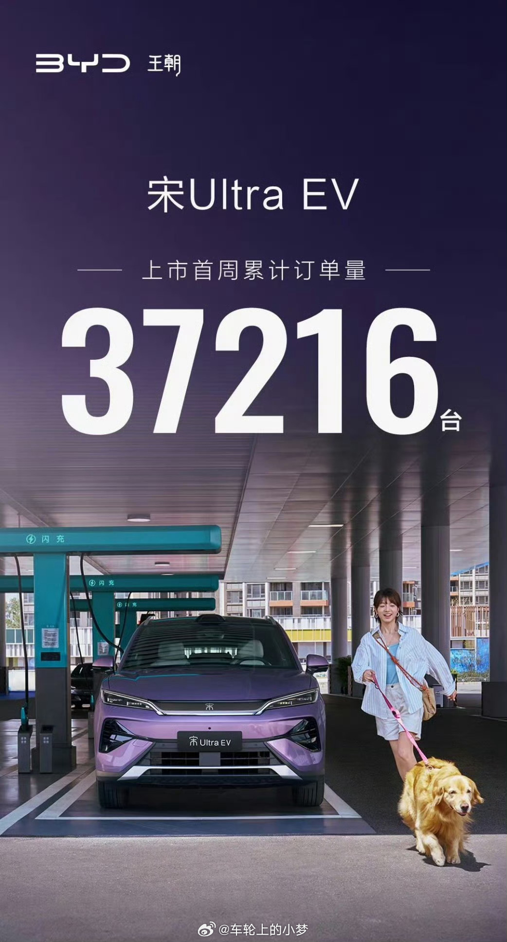 比亚迪宋Ultra EV上市才一周,订单直接冲到37216台,这数据确实有点吓人。