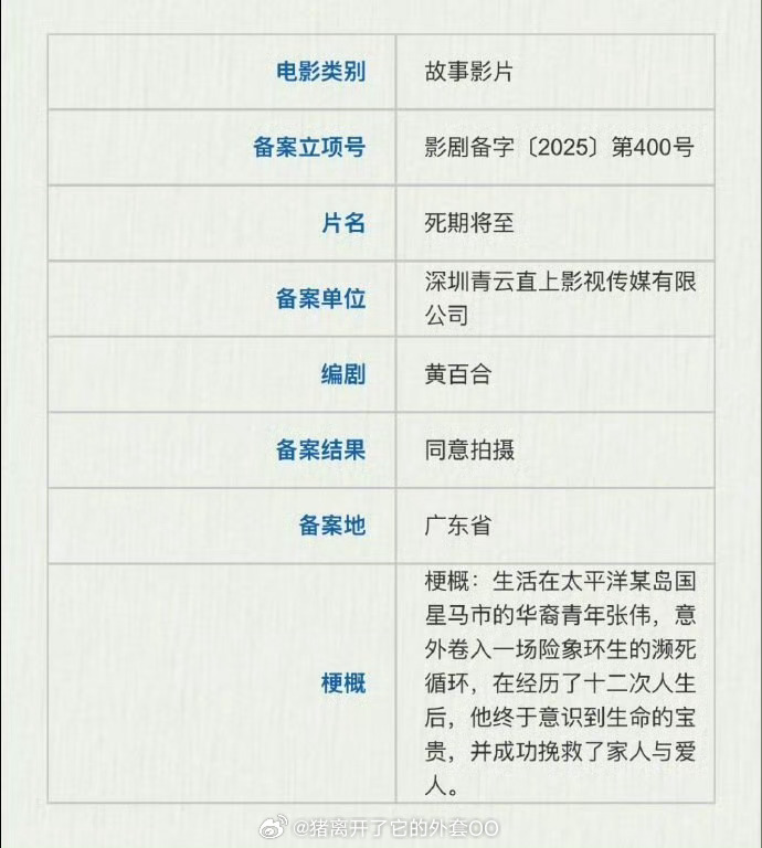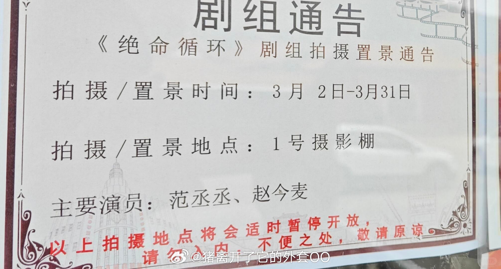 范丞丞、赵今麦电影《绝命循环》原名(死期将至)将在本月佛山开机!导演:张壹男(张