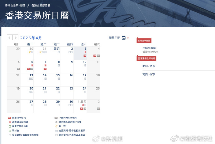 【#港股休市五天#】#港股4月3日起休市五天# 耶稣受难日、清明节、复活节来临,港股4月3日(周五)至4月7日(周二)休市,4月8日(周三)恢复正常交易。 (财联社)