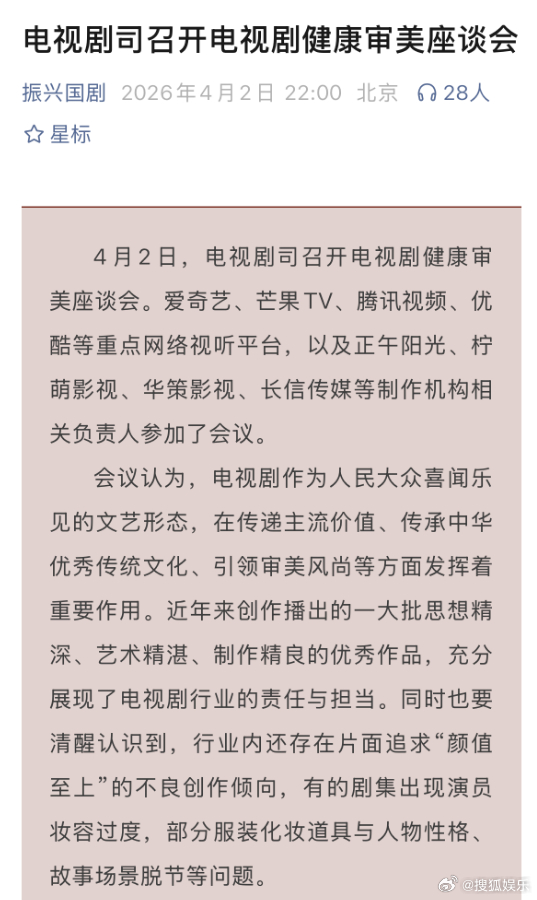 广电总局电视剧司召开电视剧健康审美座谈会,并发文: