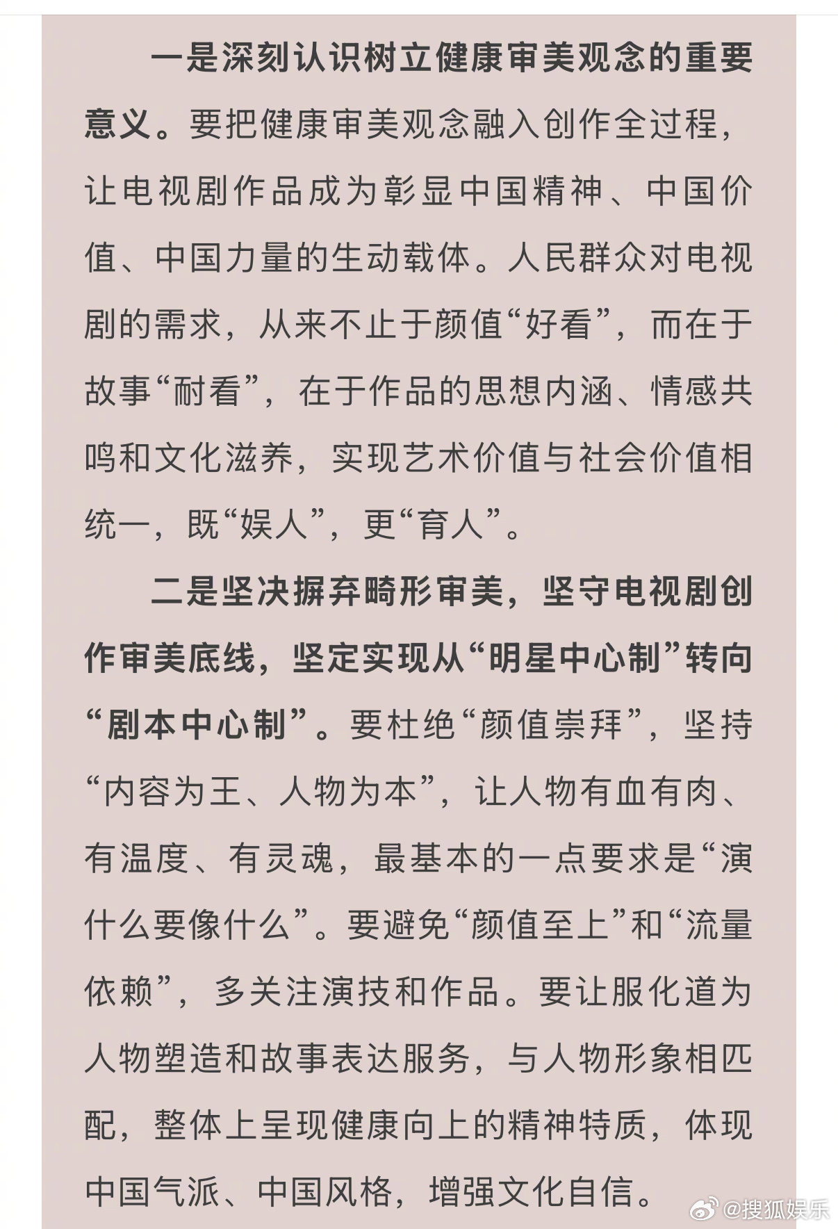 要杜绝“颜值崇拜”,坚持“内容为王、人物为本”,让人物有血有肉、有温度、有灵魂,最基本的一点要求是“演什么要像什么”。要避免“颜值至上”和“流量依赖”,多关注演技和作品。