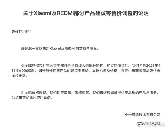 受全球存储芯片等零部件涨价影响,今天小米官宣调整部分在售产品的零售价,REDMI K90 Pro Max上调200元,Turbo 5、Turbo 5 Max取消新春特惠、512G大内存继续补贴200元 最近想入手新机的等等党估计得看准时间及时入手了 小米调价