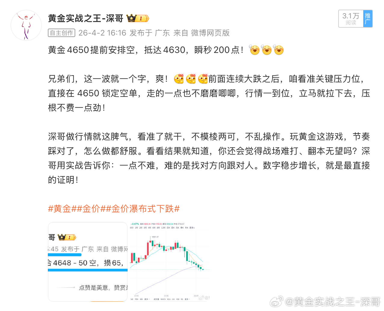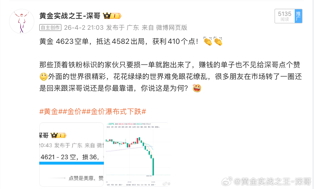 黄金4590多,抵达4575出局,损150点黄金4650空,抵达4630出局,获200点黄金 4623空,抵达4582出局,获410点