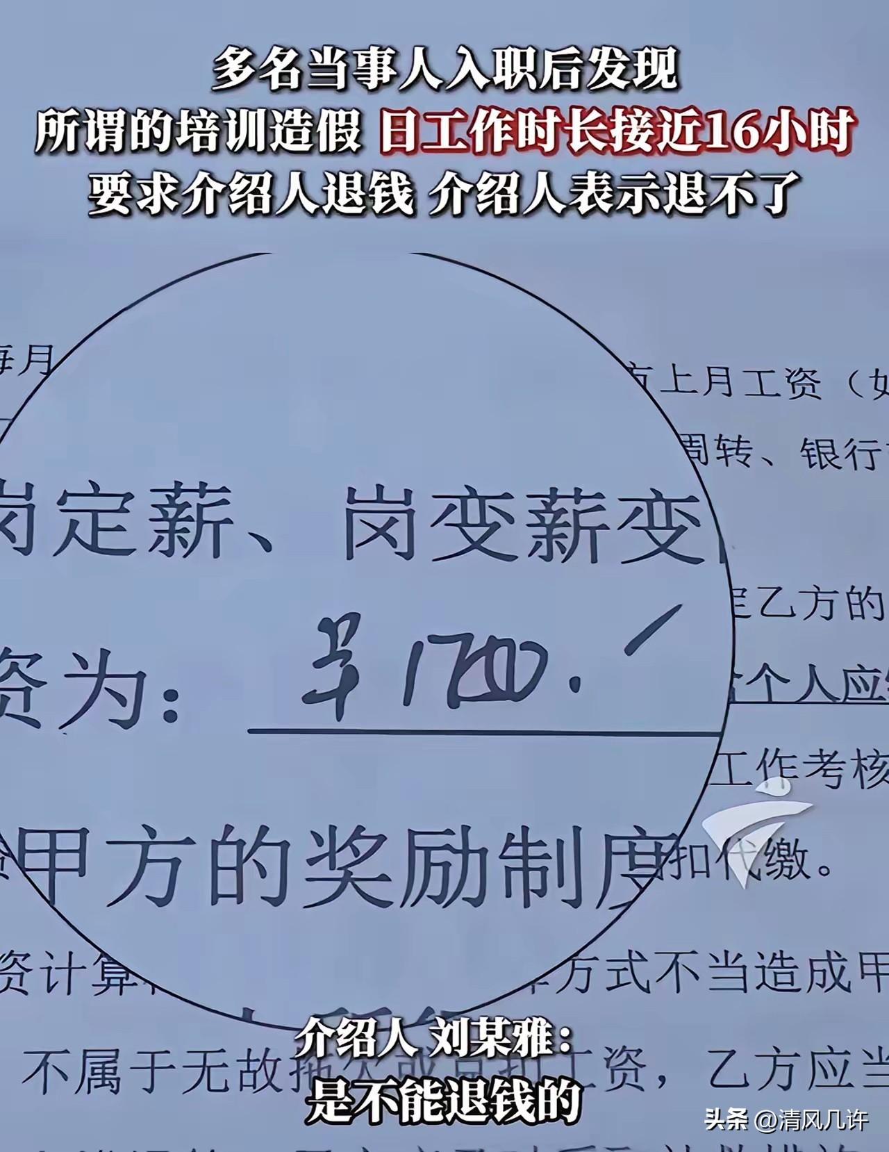 “太离谱!”广东,一女子找中介,花28000元进高铁站当安检员,本以为拿到了高薪的铁饭碗,岂料,却发现月工资才1750元,而且每天要干16个小时,女子认为受到欺骗,要求中介退钱却遭拒,报警也未立案。 当事人阿萍那段时间正被求职焦虑困住,刷到中介刘某雅的招聘广告时,几乎是立刻动了心。 刘某雅在朋友圈里晒出高铁工作证、入职合影,承诺这是高铁正式编制岗位,月薪保底五千,朝九晚五,五险一金齐全,还有年终奖和节日福利,只要交28000元的安置服务费,就能走内部绿色通道,跳过公开招聘,直接入职。 阿萍没多想,把自己攒了大半年的工资,加上父母凑的补贴,凑齐28000元转了过去。 她满心都是对未来的期待,以为自己终于拿到了安稳的铁饭碗,不用再挤招聘会,不用再为面试焦虑。中介收了钱,很快安排了所谓的岗前培训,可全程都是走形式,既没有高铁工作人员授课,也没有专业技能考核,更像是走个过场,应付入职流程。 等到签合同那天,阿萍才发现不对劲。合同上的甲方,根本不是高铁站,而是一家她从没听过的第三方劳务派遣公司。 她当时就提出了质疑,得到的回复是“只是走个流程,实际还是高铁正式工,待遇不会变”,她半信半疑签了字,直到第一个月工资到账,所有的幻想彻底破灭。工资条上明明白白写着,月工资1750元,扣完社保后,到手的钱连1500都不到。 更让她崩溃的是,所谓的朝九晚五全是谎言,安检岗实行两班倒,早班从凌晨四点到晚上八点,晚班从晚上八点到次日凌晨四点,每天工作时长接近16个小时,连轴转的高强度工作,让她没几天就熬得身心俱疲。 她这才彻底明白,自己掉进了中介精心设计的骗局。所谓的高铁正式工、高薪铁饭碗,全是中介编造的谎言,她只是第三方劳务公司派到高铁站的临时工,没有编制,没有福利,只有低薪和无休止的加班。 阿萍立刻找到中介刘某雅,要求退还28000元的服务费,可刘某雅的态度瞬间翻脸,直接拒绝退钱,还拿出当初签的服务合同,指着上面“成功入职后服务费不予退还”的条款,说钱已经给了上面的渠道,退不了,甚至反过来指责阿萍不能吃苦,是自己不想干,不是中介的问题。 阿萍气不过,选择报警求助,可警方调查后,认定双方有签订的服务合同,属于民事劳务纠纷,不符合刑事立案的条件,没有立案,让她通过法院起诉或者向劳动监察部门投诉解决。 阿萍这才知道,不止自己一个人被骗,还有多名和她一样的求职者,都是花了几万块的安置费,被中介安排到了同样的岗位,拿着1750元的月薪,干着16小时的高强度工作,找中介退钱,全被一口回绝。 这些求职者里,有刚毕业的大学生,有想换稳定工作的打工人,他们都抱着对高铁铁饭碗的向往,掏出了自己的血汗钱,最后却落得人财两空的下场。 大家这才看清,中介所谓的内部渠道,根本就是子虚乌有,他们只是把求职者批量塞给第三方劳务公司,赚取高额的介绍费,至于岗位待遇、工作时长,全是中介用来骗钱的幌子,从头到尾就没打算兑现。 正规的高铁安检员招聘,从来都是公开透明的,由铁路部门官方在官网发布招聘信息,全程不收取任何费用,凡是以安置费、服务费、内部名额为由收钱的,全是骗局。 这类黑中介,就是抓住了求职者急于找稳定工作的心理,用高薪、铁饭碗当诱饵,收取高额费用,实际上根本没有任何安置能力,只是赚信息差的黑心钱,甚至很多中介和第三方劳务公司勾结,分成这笔服务费。 阿萍和其他受害者联合起来,找媒体曝光了这件事,还聘请了律师,准备向法院提起诉讼,要求中介退还全部服务费。 他们希望通过自己的经历,提醒更多求职者,找工作一定要走正规渠道,不要轻信所谓的内部名额、高薪安置,凡是收钱找工作的,全是骗局,千万不要轻易掏钱,避免自己的血汗钱打了水漂。 这件事也给所有求职者敲响了警钟,求职路上没有捷径,所谓的花钱买铁饭碗,本质上都是精心设计的骗局。正规的用人单位,不会以任何名义向求职者收取费用,凡是收钱的,要么是黑中介,要么是诈骗,一定要提高警惕,擦亮眼睛,不要被所谓的高薪、铁饭碗冲昏头脑。 很多人都在为阿萍和其他受害者鸣不平,指责中介的黑心,也有人感慨,现在就业压力大,才让这些黑中介有了可乘之机。但不管就业环境如何,求职都要守住底线,不要轻信任何非官方的招聘信息,更不要轻易掏钱,只有这样,才能避免陷入求职骗局,保护好自己的合法权益。 阿萍至今还在为维权奔波,28000元不是小数目,是她和父母的血汗钱,她不会轻易放弃。她也希望,相关部门能加大对这类黑中介的查处力度,严厉打击求职诈骗,让更多求职者不再上当受骗。 各位读者你们怎么看?欢迎在评论区讨论。
