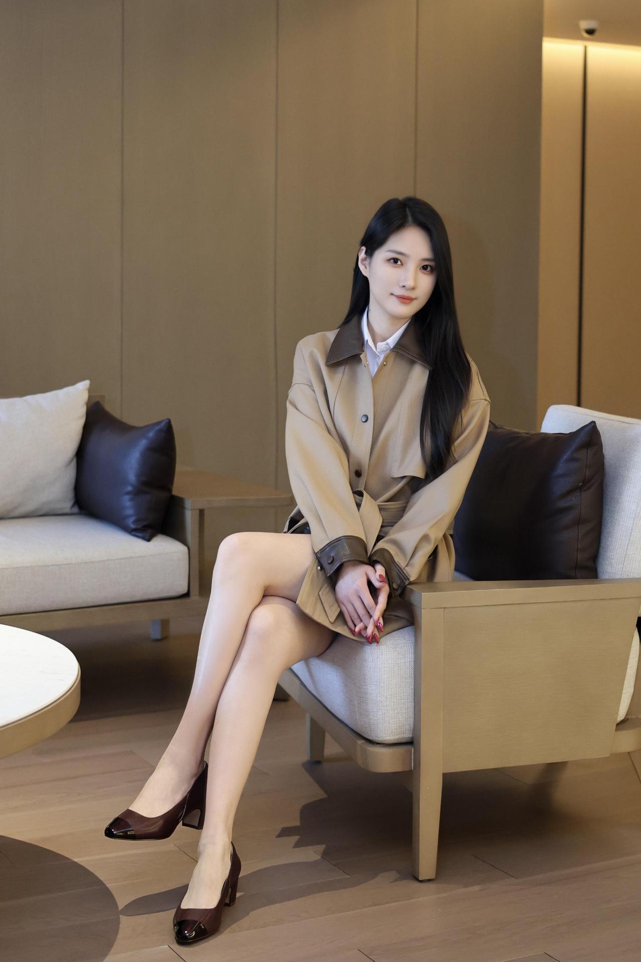 优雅职场风,米色西装外套搭配黑色高跟鞋,尽显干练气质。