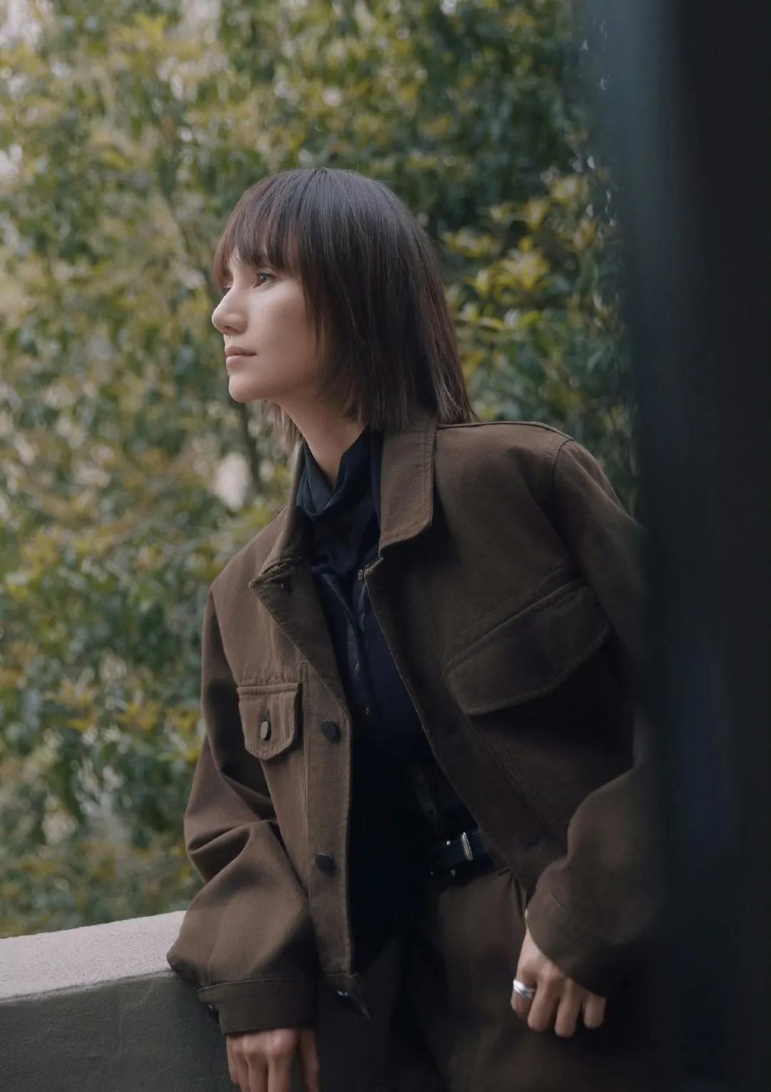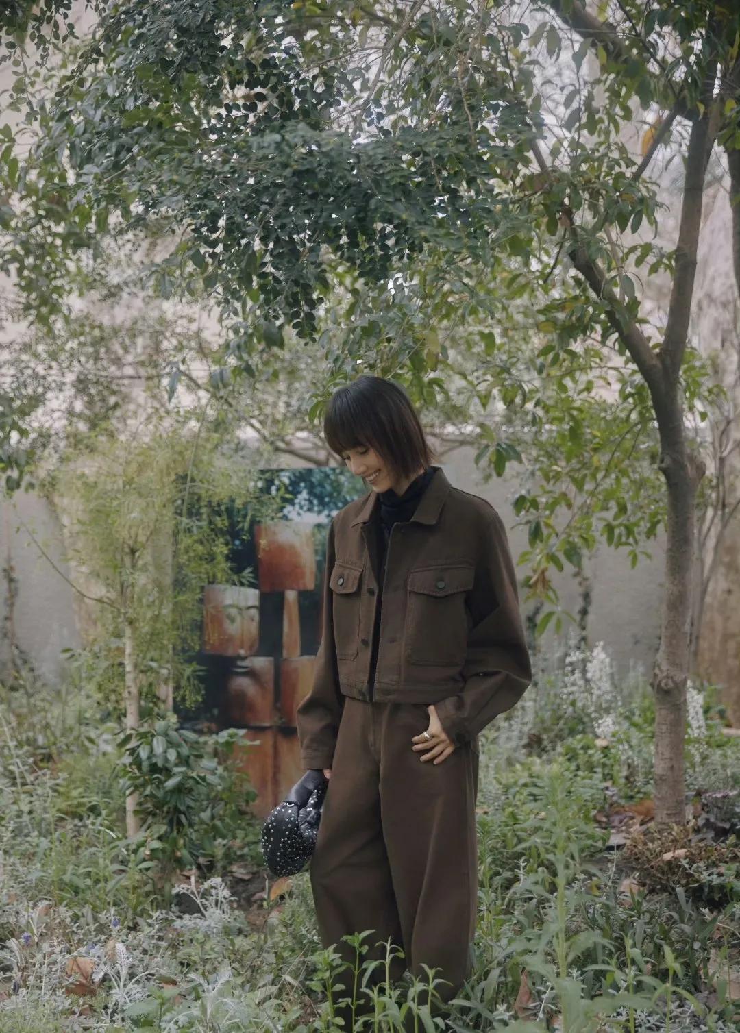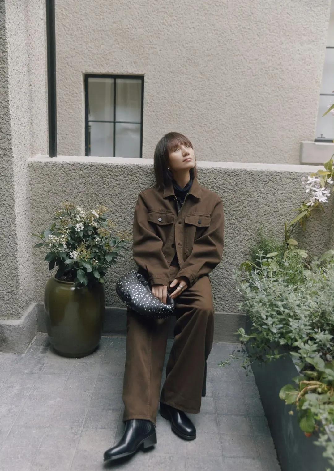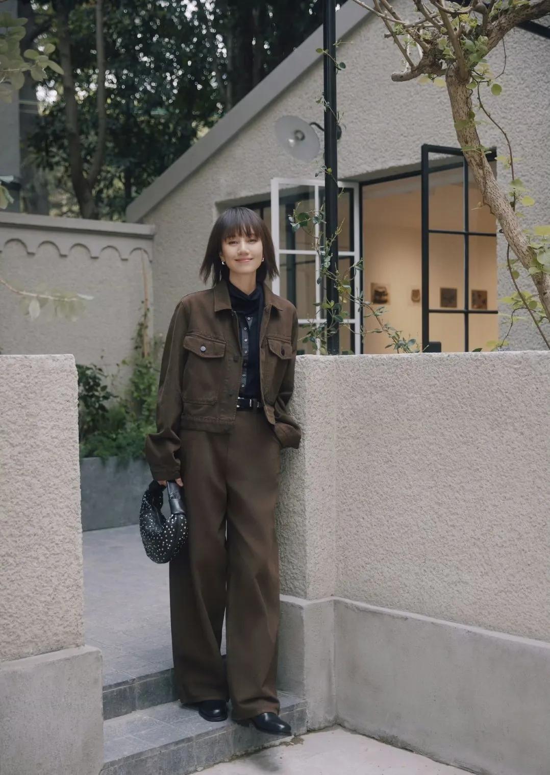 袁泉棕色套装,松弛感天花板✨ 袁泉这套深棕工装夹克+阔腿裤,同色系穿搭直接把高级感焊死! 硬挺面料撑住线条,叠穿黑高领+衬衫,利落又知性。 高腰阔腿裤遮胯显腿长,细节感拉满,通勤日常都能穿,穿搭范本实锤! 袁泉穿搭 棕色系穿搭 松弛感穿搭 高级感穿搭