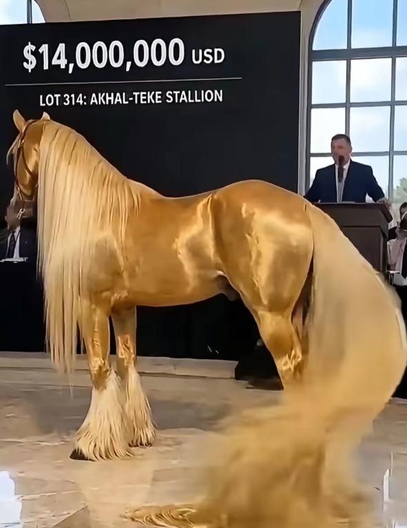 2019年,俄罗斯国际马匹拍卖会上,人们终于见到了源自土库曼斯坦、超过4000年历史的“汗血宝马”之极品“黄金马”。 2019年的这场盛会之所以能吸引无数人的目光,并非仅仅因为会上齐聚了世界各地的优质名马,更核心的原因,是有一匹传说中的“神驹”确认会在此亮相。 来自全球各地的爱马者、资深收藏家、马场经营者,不远万里奔赴莫斯科,只为亲眼目睹这匹只存在于传闻中的“黄金马”。 关于这匹马的传闻五花八门,有人说它是土库曼斯坦专门培育的皇室级珍品,常年被精心照料,几乎不对外公开露面。 也有人描述,它的毛色绝非普通的黄色,而是像被打磨过的纯金,在自然光下会折射出柔和又耀眼的光泽。 还有人说,这匹马的血统纯度堪称顶级,每一代祖辈的信息都有完整的文字记载,没有掺杂任何其他马种的基因,这样纯粹的血统,在当今世界极为罕见。 这些传闻不断发酵,让全球马迷的期待值被拉到极致,不少人提前一周就抵达莫斯科,就为了不错过黄金马登场的每一个瞬间。 到场的人们三三两两聚在一起,谈论的话题几乎全围绕着黄金马,目光也始终在拍卖台后方的入口处徘徊,生怕一个疏忽,就错过了这难得一见的画面。 拍卖会前期,虽然也有不少优质马种陆续登场,有擅长奔跑的纯血赛马,有体态优美的骑乘马,每一匹都品相出众,也拍出了不俗的价格。 但这些都没能分散人们的注意力,大家的心思,全都系在那匹还未登场的黄金马身上。 当一阵清脆而沉稳的马蹄声缓缓传来,所有人的目光瞬间被吸引过去。 在工作人员的带领下,黄金马踏着稳健的步伐,缓缓走进了人们的视野。 那一刻,所有人都屏住呼吸,静静地注视着这匹传说中的神驹,眼中满是震撼与惊艳。 之所以被称作黄金马,是因为它的毛色有着无可替代的独特质感——不是那种张扬刺眼的金黄,而是像经过岁月沉淀的古法黄金。 尤其是在现场灯光的映衬下,它身上的每一根毛发都泛着淡淡的金属光泽,走动时,鬃毛和尾巴随步伐轻轻摇曳,仿佛有流动的金光缠绕在身上。 全身上下泛着淡淡的金晕,透着一股与生俱来的华贵感。 它的身形比普通的汗血宝马更为修长,肩高约一米五五,体长接近一米六,四肢纤细却充满力量,肌肉线条流畅清晰。 这匹黄金马的故乡,是土库曼斯坦——汗血宝马的发源地,也就是我国古代史书里记载的大宛国。 根据相关研究发现,汗血宝马的历史已经超过4000年,在土库曼斯坦南部的考古遗址中,曾出土过公元前2400年的高大马类骨骼。 经过专家鉴定,这些骨骼正是汗血宝马的祖先。 在土库曼斯坦,汗血宝马被奉为国宝,不仅国徽和货币上都印有汗血宝马的图案,这种马还常常被作为珍贵的国礼,赠送给其他国家的重要人士。 由此可见,汗血宝马在土库曼斯坦人心中,有着不可替代的重要地位。 在当天的拍卖会上,黄金马并没有立刻进入拍卖环节,而是由工作人员牵着,让在场的每一位观众都能观察它的模样、感受它的气质。 不过当天,并没有人立刻出价,大家都在默默观察、细细品味,心里默默估算着这匹极品马的价值——毕竟,这样的黄金马,一旦出价,必然是天价。 当时就有业内人士猜测,这匹黄金马的成交价,很可能会突破千万美元,而后续的拍卖结果,也印证了这一猜测。