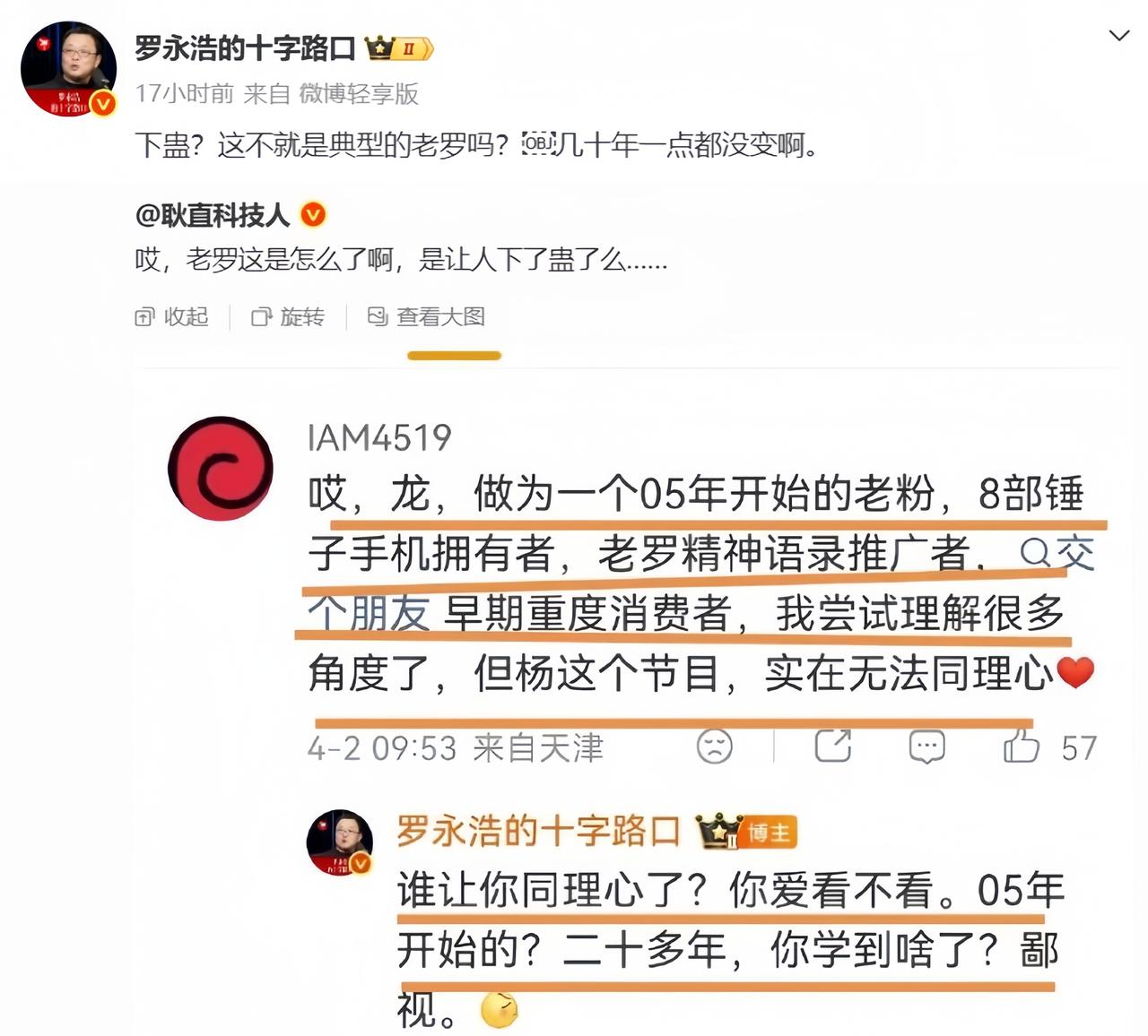 从罗永浩与崔健的访谈中,我得出结论:成功的人,认知不一定高。崔健就是典型例子。他竟然说出了“拿乐器的人越多,拿武器的人就会越少”这样荒谬的言论。 可能不少年轻读者都不认识崔健。我就这么说吧,他是中国流行音乐界(甚至摇滚界)极少数被正式收入中学、大学教材的音乐人。其成就之斐然,可见一斑。 他的这句话类似于:搞艺术的人越多,拿武器的人就越少。而实际上,只有拿武器的人足够强,其他人才有机会选择去拿乐器。 举几个例子。 古希腊戏剧、音乐盛极一时,照样战乱频繁;文艺复兴时期,艺术巅峰,欧洲战争不断;20世纪流行音乐爆发,两次世界大战、冷战及局部冲突从未停歇。 可以说,人类历史上,没有任何一个时代是因为“拿乐器的人多了”,拿武器的人就自然变少。 真正决定“拿武器的人多少”的,是制度、利益、秩序,而不是艺术。 要减少暴力,靠的是法治与秩序、经济分配与公平、社会安全感,以及国家能力与威慑平衡,这跟“有多少人弹吉他”没有因果关系。 一个人可以既爱音乐,又支持战争;一个国家也可以艺术繁荣,同时军备扩张。 归根到底,只有国家强大了,人民富足了,才有机会去追求艺术。而不是反过来。 所以大家可以对所谓名人、成功人士祛魅了,他们的认知水平也就那样。认知和成功、赚钱是两码事。很多人在网上报各种培训班,想提高所谓“认知水平”,殊不知,你提高了又如何,不过是知道了这个世界的基本运行规则,又不是获得了将认知付诸实践的机会,最终只能眼巴巴看着别人“吃肉喝汤”,自己却始终是个局外人,到头来徒增烦恼,又何必呢? 还有一点,罗永浩这些天依然在拉黑粉、骂粉丝。我怎么都想不通,一个靠粉丝吃饭、吃粉丝红利的人,怎么会有这样古怪行为。他说自己粉丝量并没怎么掉,根本不在乎。数据上看好像也确实如此。难道真有人天生喜欢被人羞辱?还是羞辱没有落到他们身上,他们只当个吃瓜群众,所以无所谓? 我想,应该两者都有吧。如果真是这样,就让人不得不佩服老罗了,他精准抓住了这些人的癖好,以后必然会更加猛烈的输出。这种逻辑,细思极恐。