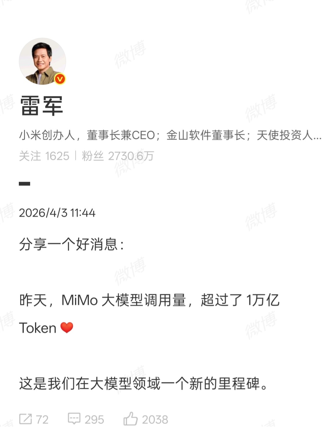 在 Xiaomi MiMo 大模型调用量超过 1 万亿 Token 的今天,Xiaomi MiMo 今日正式面向开发者推出了 Token Plan!
