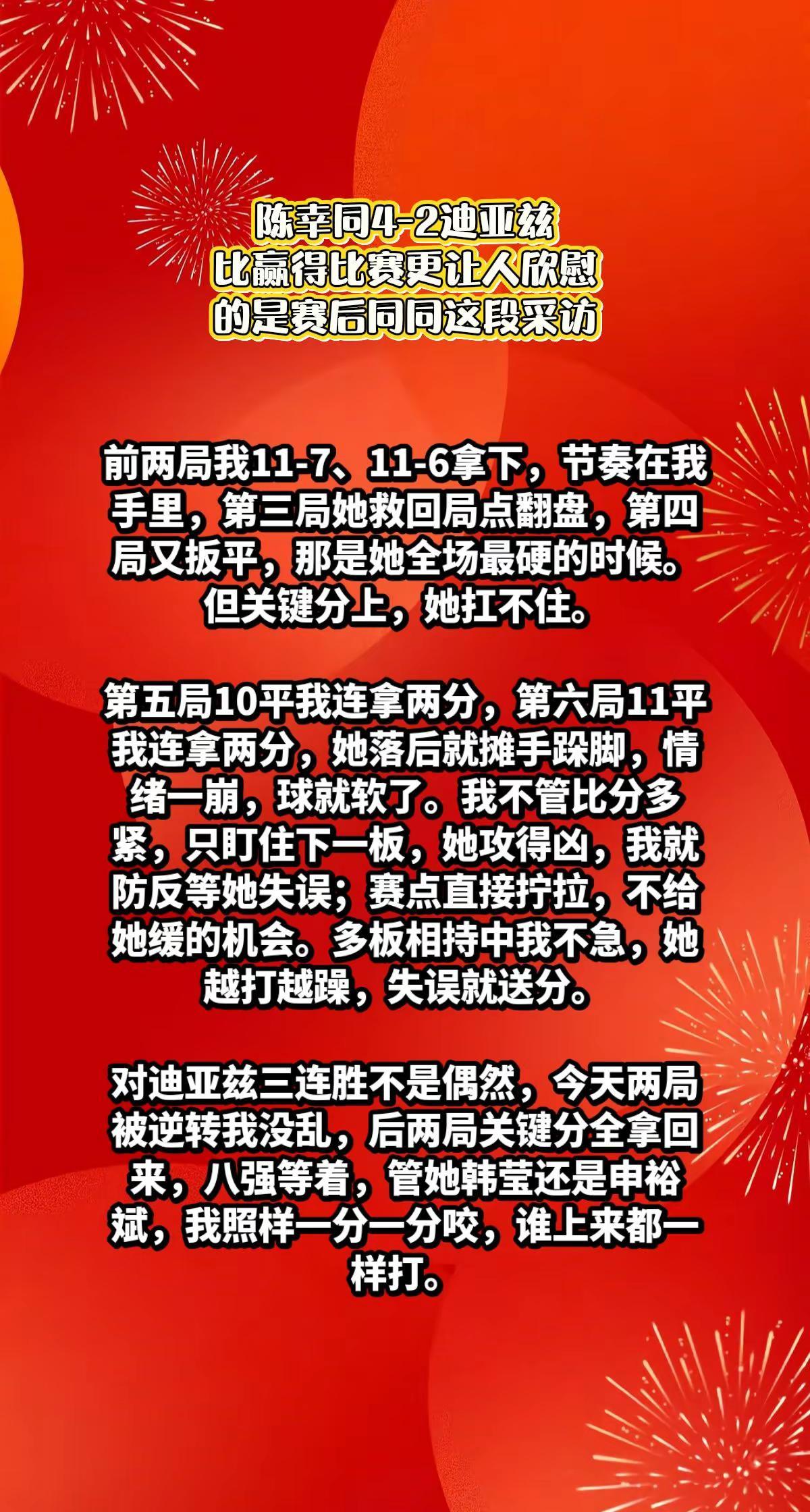 陈幸同4-2迪亚兹,赛后说出了心中想法。