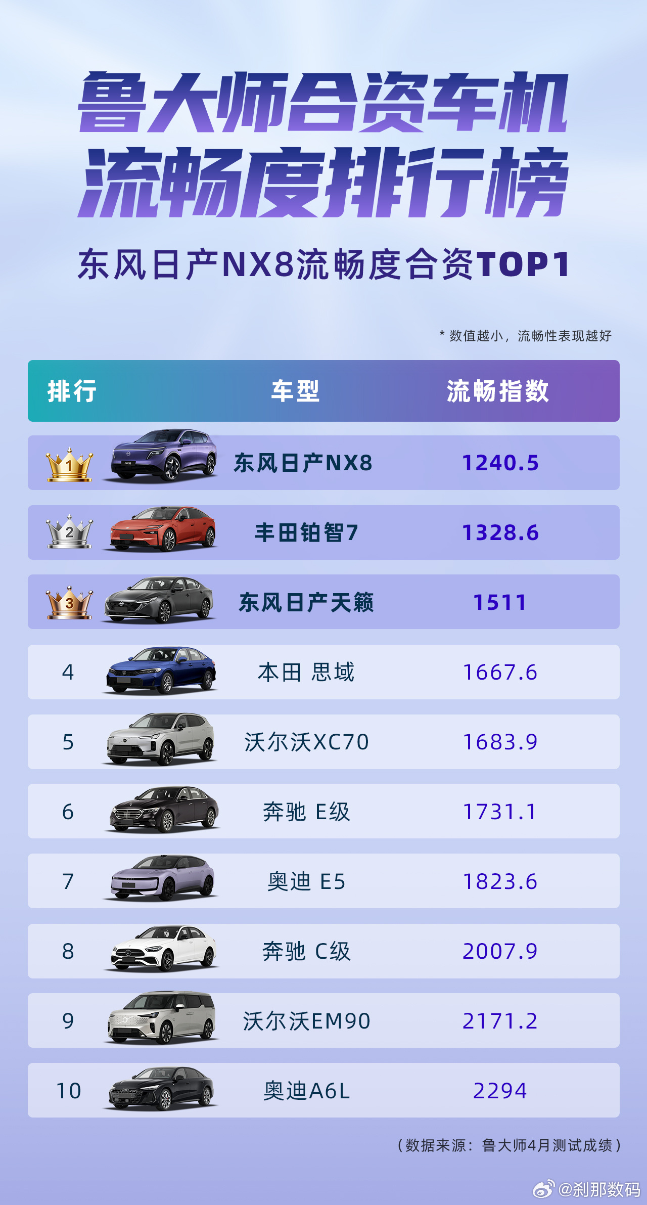 买家用SUV总让人纠结,想要合资的踏实,又馋新势力的智能最近看鲁大师车机跑分榜,NX8居然冲进了 TOP3。现在买车早过了单纯堆配置的阶段,“智能+家用”才是刚需,现在除了理想那边,东风日产 NX8也做到了两者兼顾,咱们终于不用被迫二选一了。芯片用的是高通8295P,还给了无敌的 32GB运行内存。加上2917mm的长轴距,后排舒适度完全不担心。NX8的智能表现确实不输第一梯队,既有科技感又能照顾全家人的舒适,是个实在的选择。合资一发力车机TOP1
