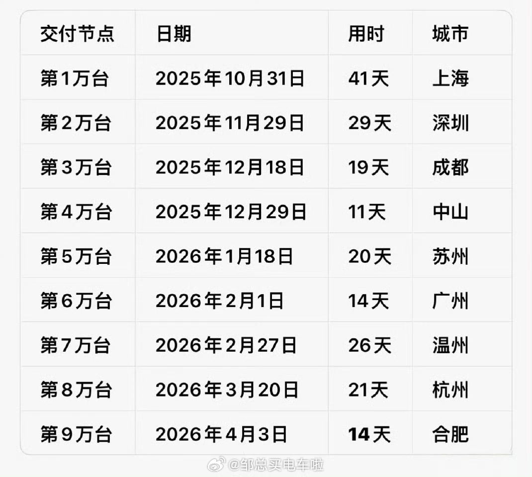 还有按我说,其实这第9万台在合肥,在哪里交付,真的已经不重要了。不过呢可能蔚来每位区域城总可能都想上个榜