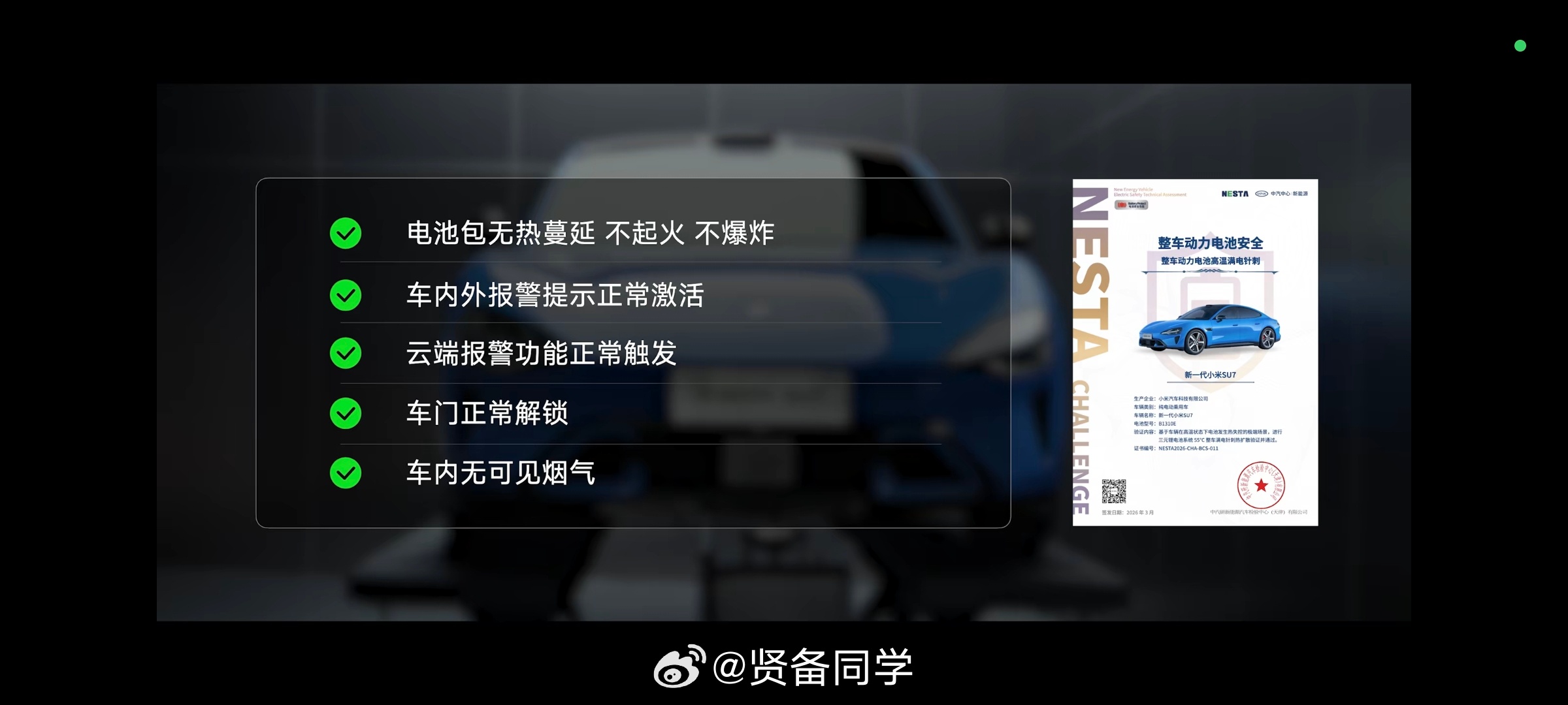 小米这一波对新能源汽车电池的安全测试标准确实太硬核,大家看一下相关发布的主体就知道了!国标相当于大家考试的通过线,这个是必须要达标的。但是大家都达标了,你的优势又在哪里?所以车企的主观能动性和继续创新引领就很有必要了!电池安全标准不止于国标