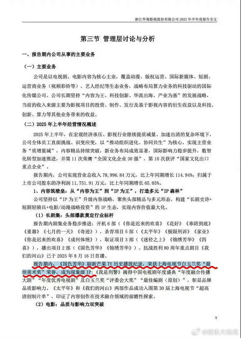 杨紫李现的国色芳华双登 华策芒果🥭财报,成为其25年最赚钱的剧!湖南卫视认证爆
