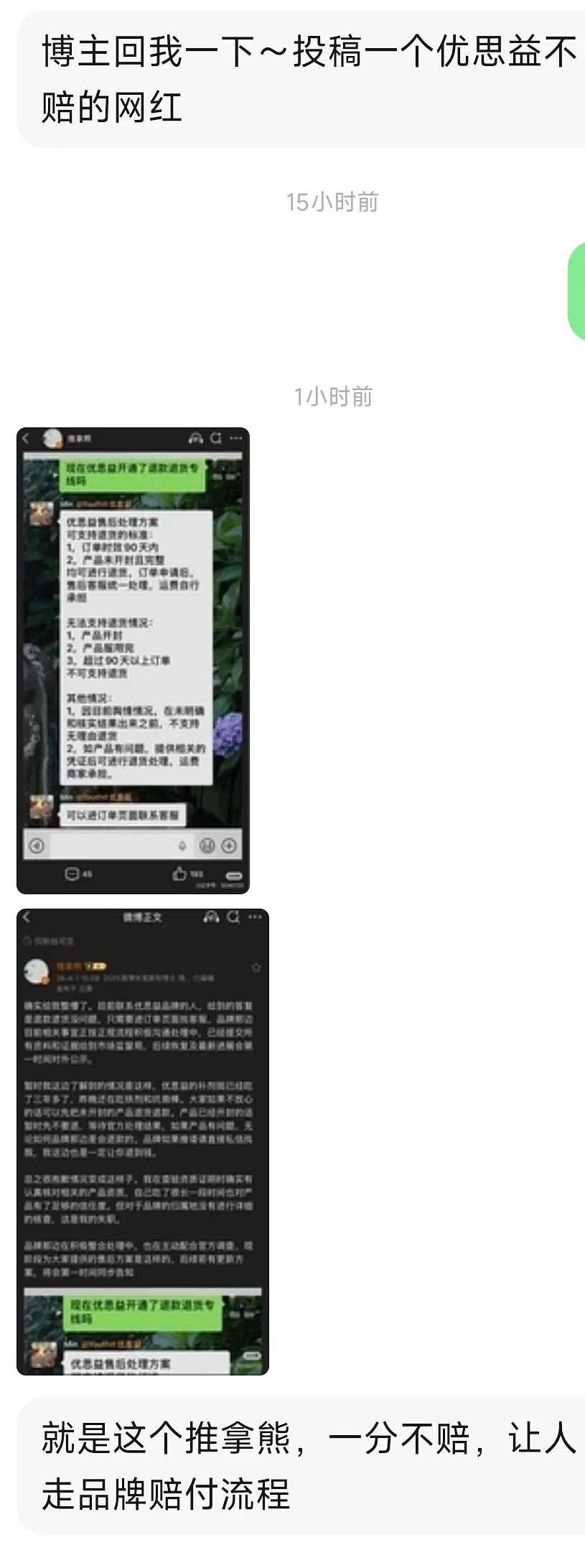 优思益赔付这个呱给我吃乐了有的网红天天炫富结果是真的一毛不赔有的出来说自己也是受