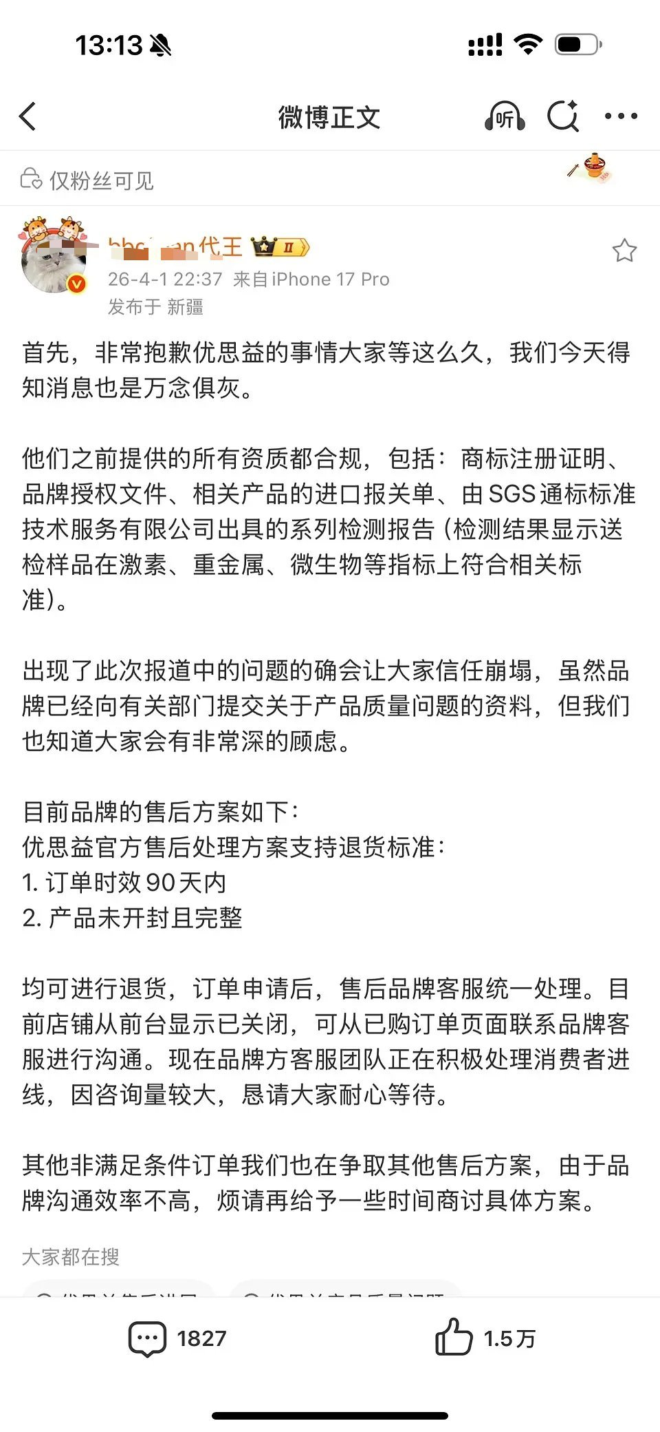 优思益赔付这个呱给我吃乐了有的网红天天炫富结果是真的一毛不赔有的出来说自己也是受害者
