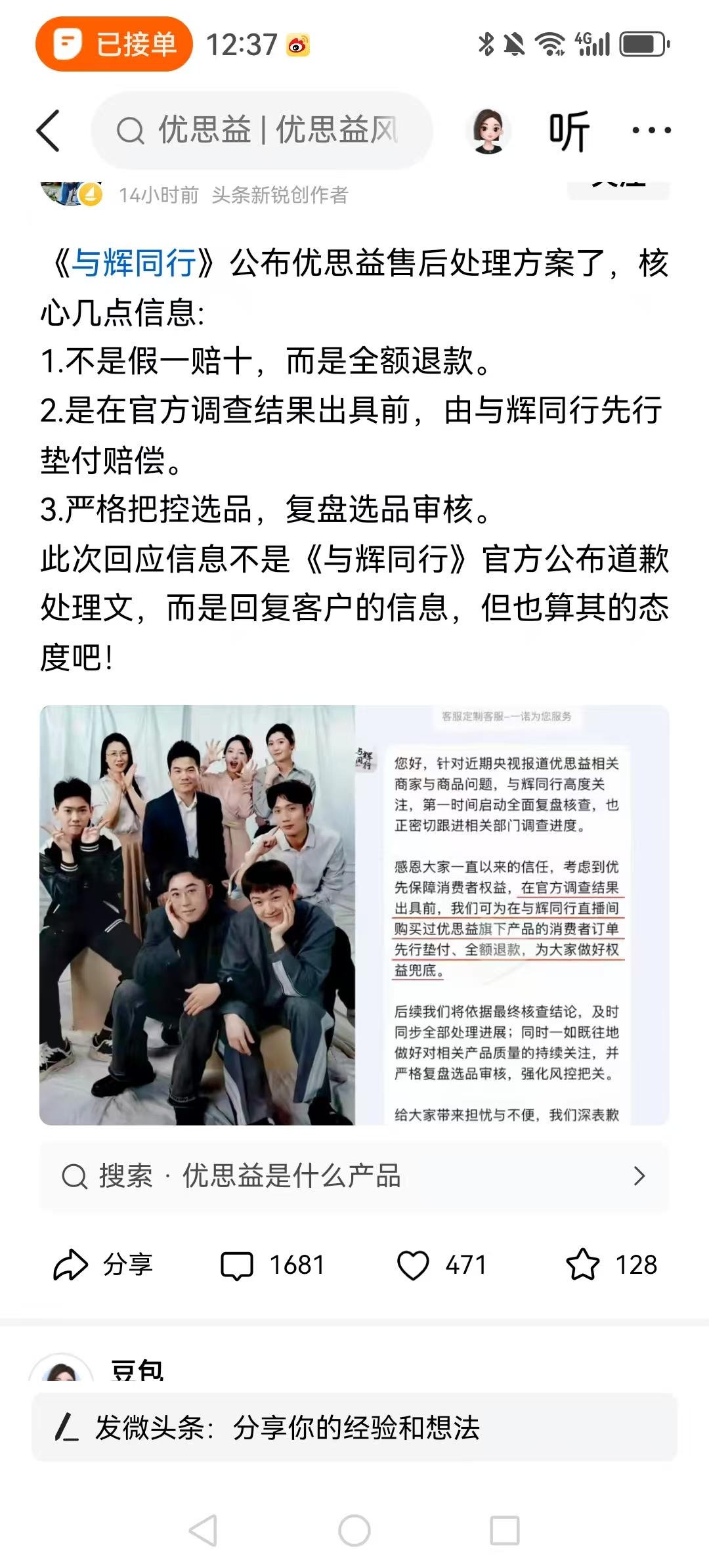 你发现了我就赔20块,你不发现我就挣300,利润丰厚,违法成本极低,直播卖货的不是传统的b to c,卖货自己就是中介平台,抽手续费的,这个肯定和制假全责。 董子出事一问三不知,一推四五六,官方应该结束了,假一赔十应该落实,不让我随便卖假货,被发现就退款,试错成本太低了,谁还去把控质量,有钱就赚。 全额退款,那卖假货的处罚基本没有啦,查到了就退,没查到就爽哇哇。 被抓到退还赃款,这样的话,小偷更不怕了。 这连假货都算不上,虚假注册地,连保健品认证都没有,较真起来这是诈骗。 宇辉已经尽力了,每月几百万检测费,很多厂都是单为他开一条线,他只是中枪了而已。 直播间还亲口说,派人去工厂检查了,就一个汽修厂 检查了个啥,信口开河。 检查了就是修车的,所以才卖啊,这样不是更暴利吗? 我听说验厂工人在厂里住,在生产线看着他们生产,跟工厂的流水线一起吃饭睡觉。 一年营收200多亿,这体量,这规模是真的大……不知道公司到底有多少人?又有多少人因为这种公司的存在失去了工作岗位。