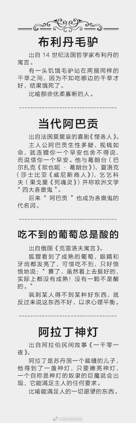 30个常见外国文学典故!你知道几个?大家快来和圆圆一起涨知识啦!