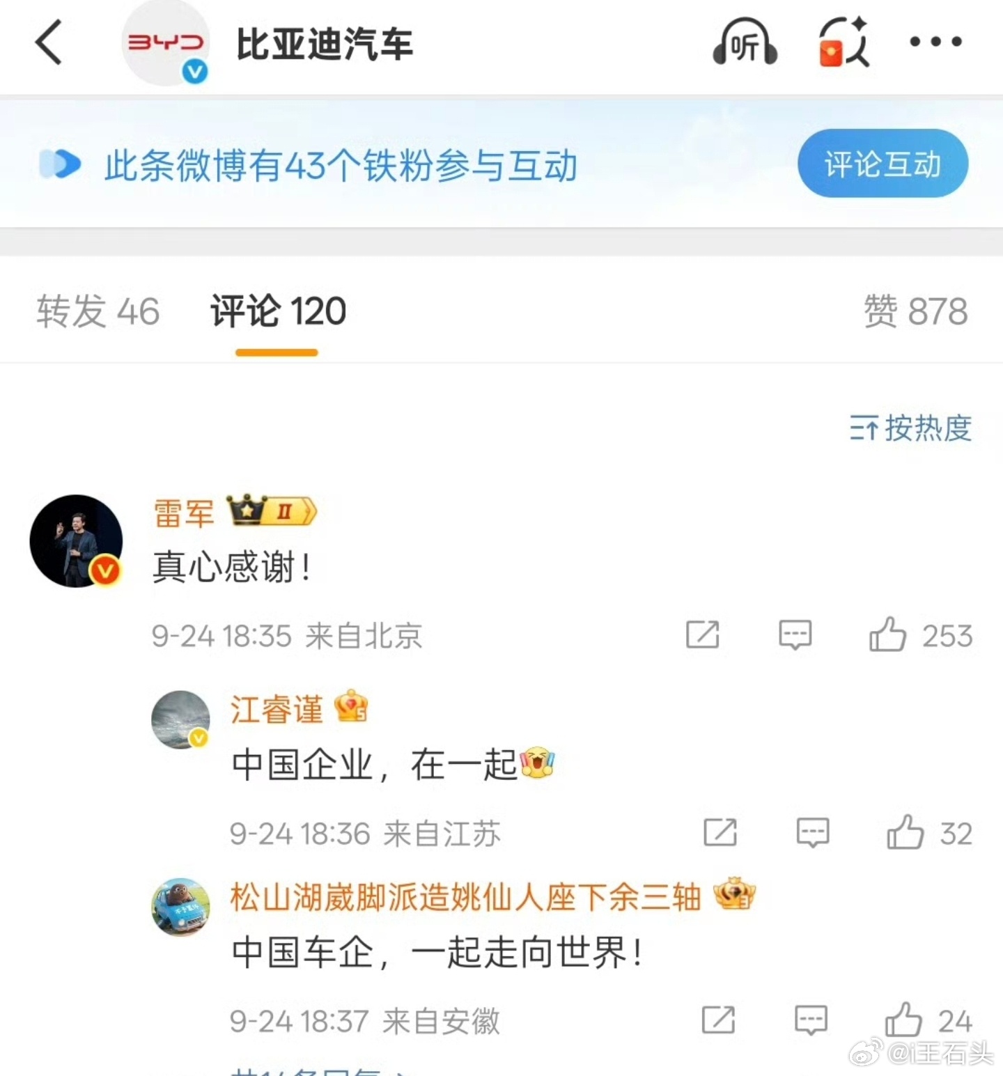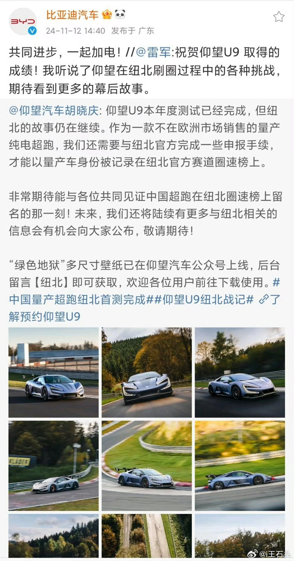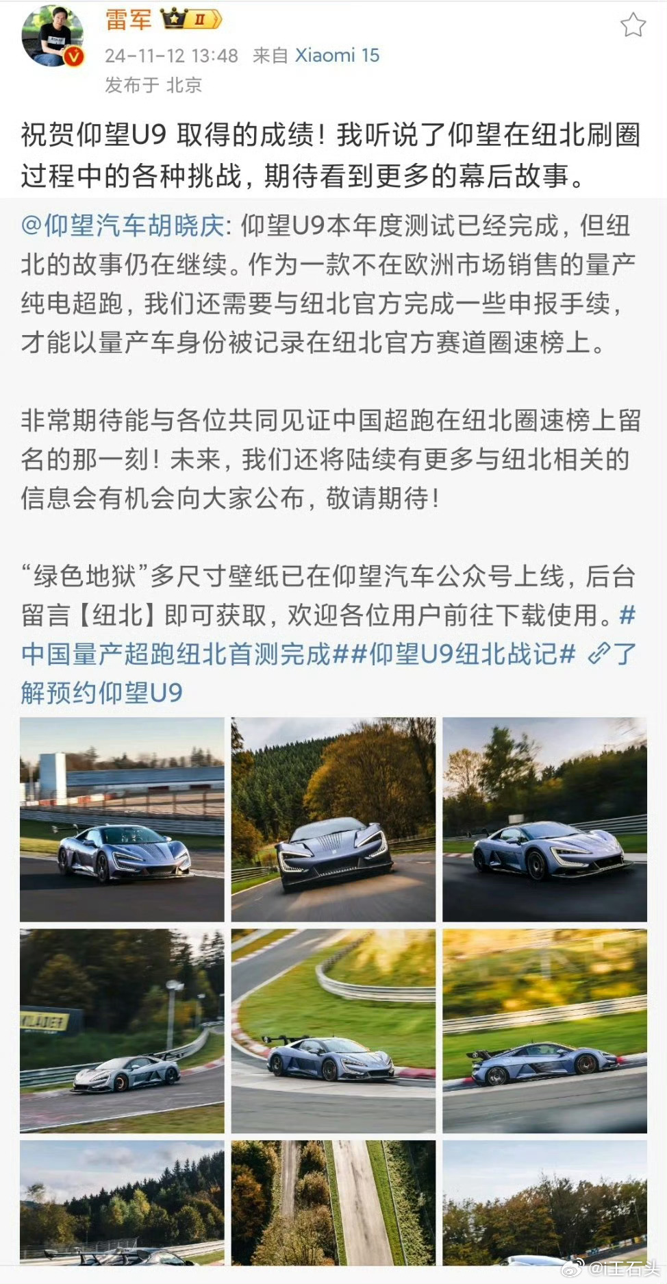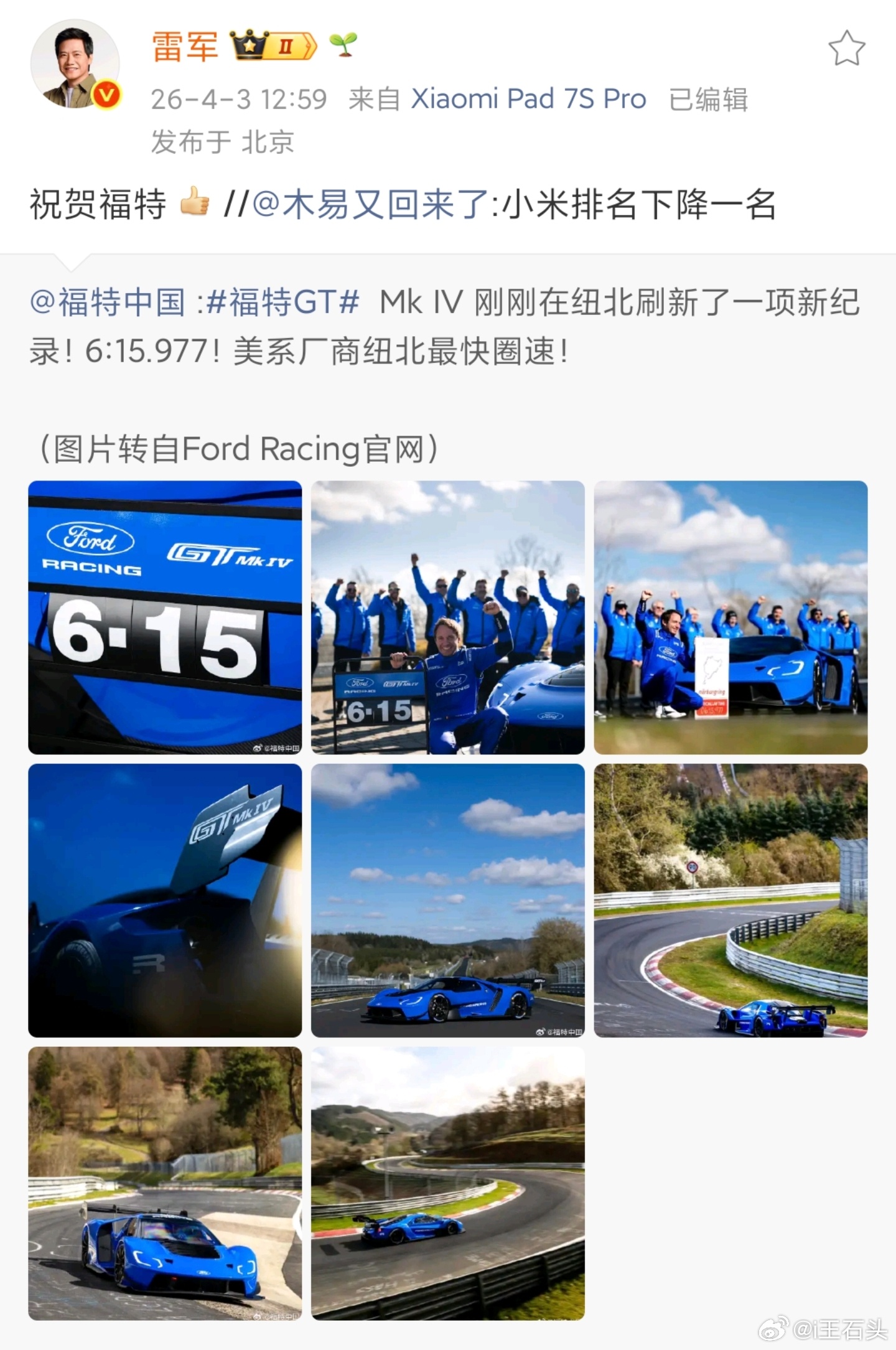雷军祝贺福特在纽北刷新纪录,我看到有人拿小米和比亚迪带节奏,说雷总没有祝贺仰望…睁开你的双眼看看吧!!!什么事都能搬出来带节奏搞对立,实际上小米跟各家关系都很好,如果有关系不好的,不是该反思自己吗,怎么总想着把别家关系也搞坏呢?