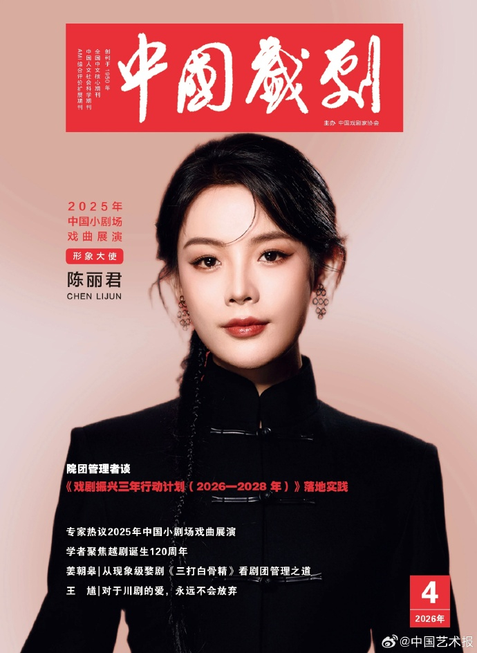 【中国戏剧封面陈丽君】陈丽君中国戏剧封面人物登上《中国戏剧》2026年第4期封面!《中国戏剧》由中国戏剧家协会主办,是全国中文核心期刊及人文社会科学领域权威刊物,反映我国戏剧理论研究、戏剧创作及舞台艺术的发展现状,报道国内外戏剧界动态及各类戏剧节活动。从大众电影到中国银幕再到中国戏剧,陈丽君可塑性好强!